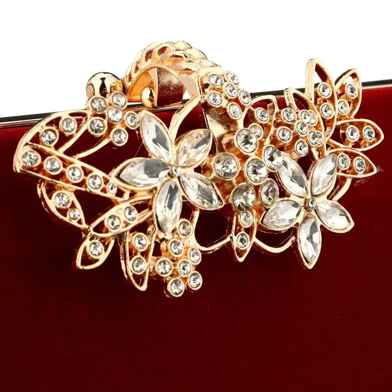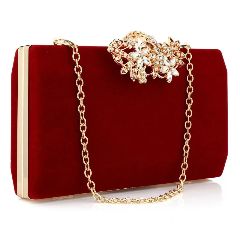 European fashion Noble Lady Rhinestone Evening Clutch Tote Bag Burgundy Black Gold Solid Women Shoulder Chain Suede SurfaceFeatures :1.Feature:Velvet material,floral diamonds design ,Removable Shoulder Strap, Solid Color, Lightweight and Durable, Snap Closure2.Material: Made of high quality , which delivers outstanding lightweight and durable for using everyday3.Large capacity: All your phone,ID card,ticket,cashes and other small personal belongings can be contained and organized4.Occasion: Perfect for weekend, wedding, evening party, causual daily use, cocktail, vacation, shopping, date or any other occasionsNO:190407080159