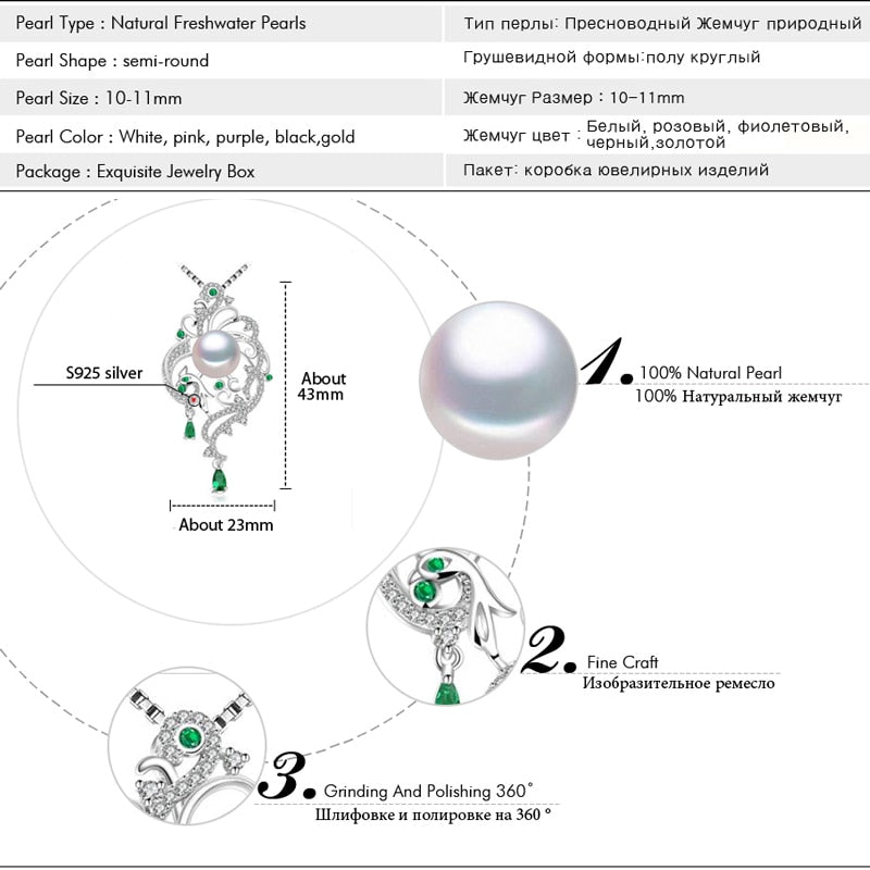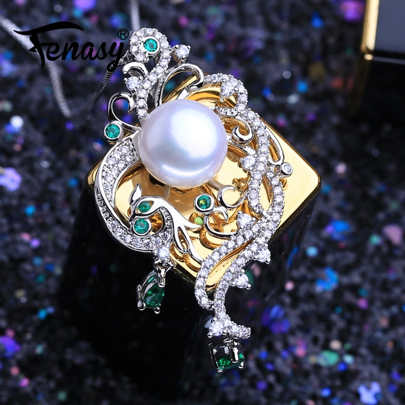 FENASY 925 Sterling Silver Luxury Phoenix Pendant Necklace Emerald Bohemian Party Natural Freshwater Pearl Necklaces For Women