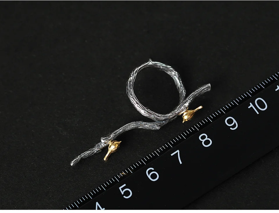 Lotus Fun Real 925 Sterling Silver Natural Handmade Designer Fine Jewelry Adjustable Ring Bird on Branch Rings for Women Bijoux