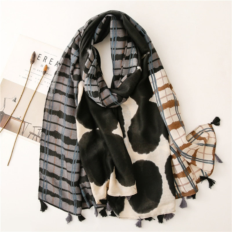 Luxury brand women leopard print cotton scarf shawls for winter foulard femme long soft warm wraps cachecol