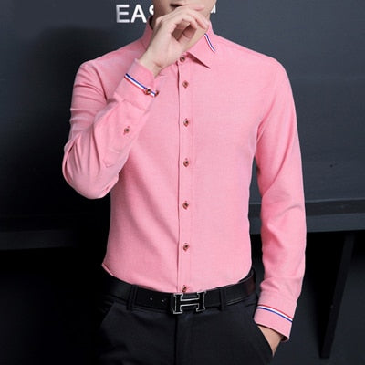 MIACAWOR Spring Long-Sleeve Dress Shirts Men Fashion Oxford Camisa Masculina Slim Fit Casual Shirt White C274