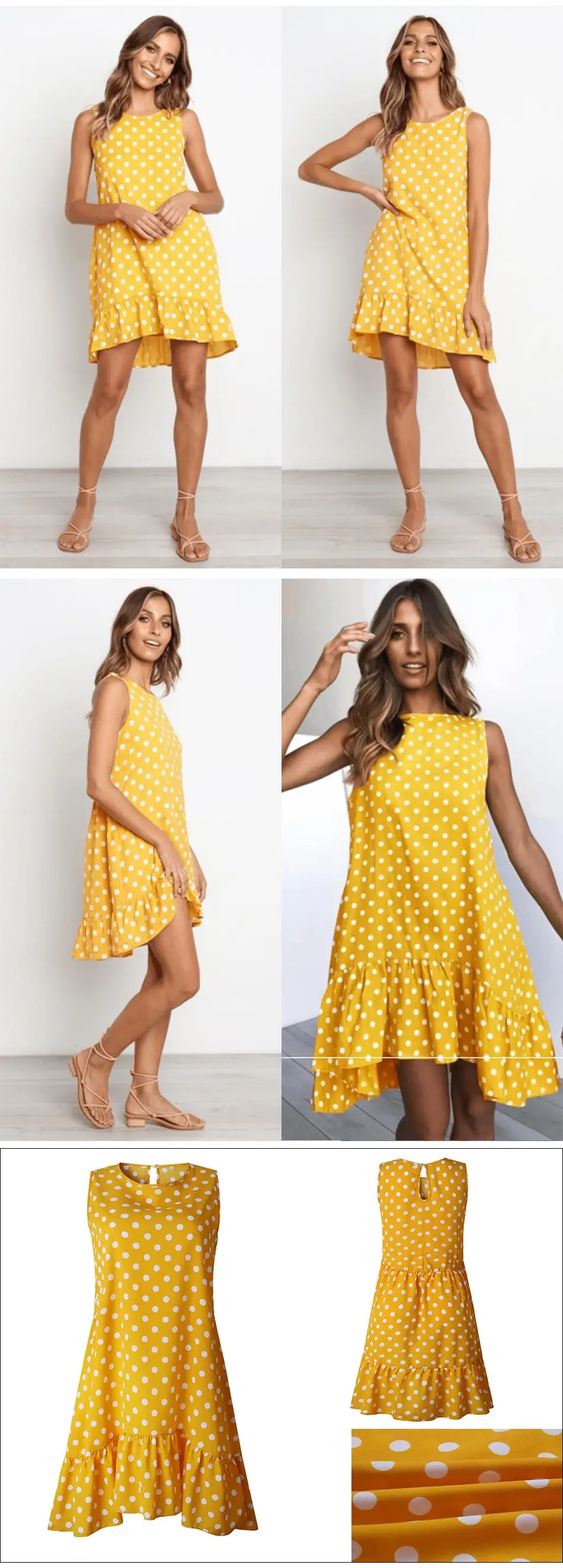 Loose large size / Sleeveless /Polka Dot/Fashion/Holiday/Beach/Black/Yellow