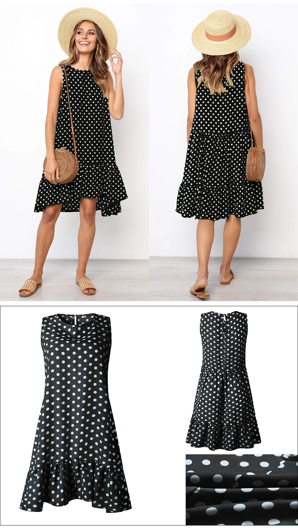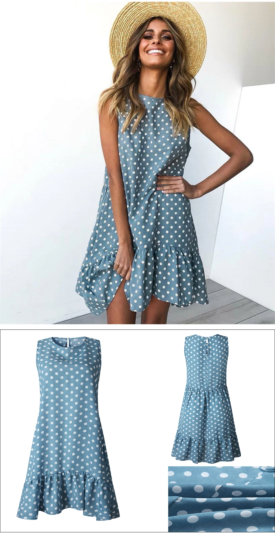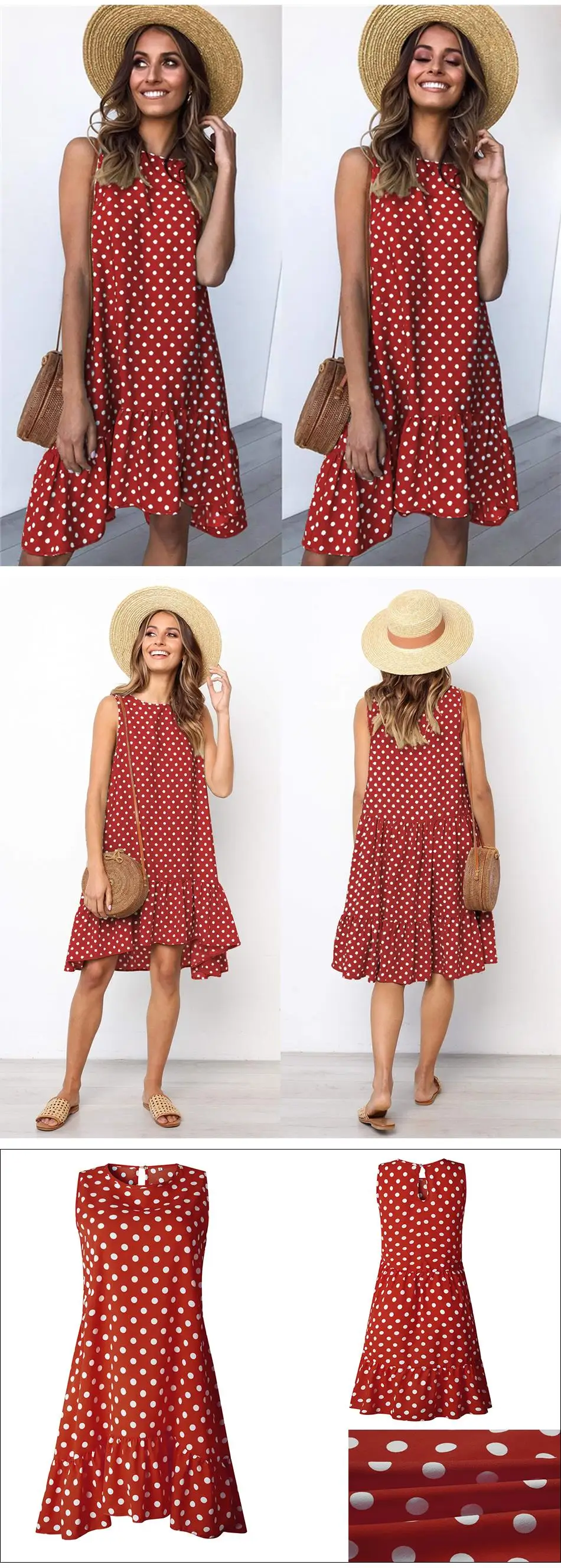 summer Dress Women Wave Point Ruffled Polka O Neck sleeveless Casual Beach Sundress Transparent Female Plus Size vestidos 2020