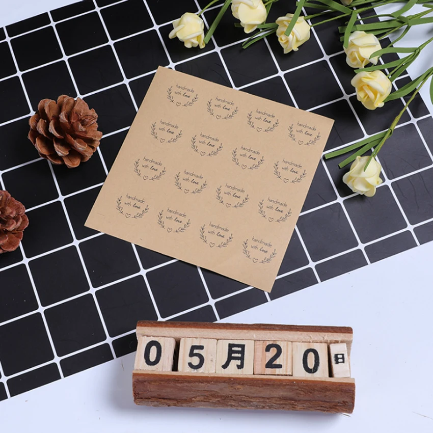 160pcs/lot Round Love garland handmade with love DIY decorative stickers Kraft paper white transparent Sealing Label Sticker