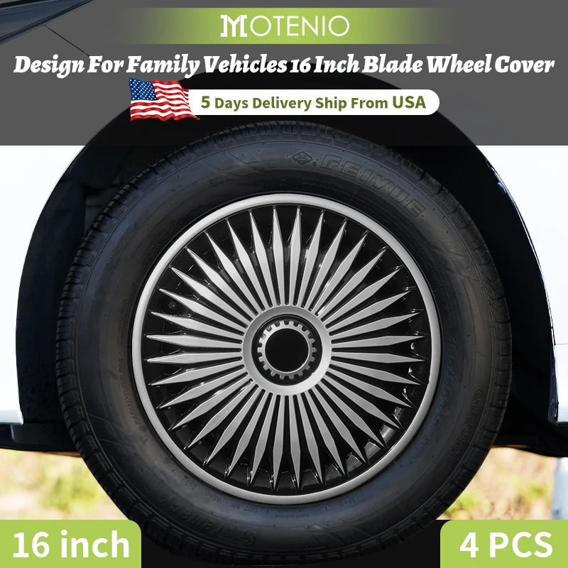 16inch Blade Style Hub Cap Cover for Iron Rim Wheel Cover Set of 4 Steel Wheel Cover Replacement Hubcap for R16 Tire