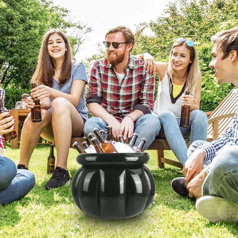 Large size Cauldron: This cauldron is 22 inches wide and 18 inches tall when fully inflated. When used as a beverage cooler,it can easily store up to 35 cans of beverage depending on the amount of ice you use. Good size for a small gathering.