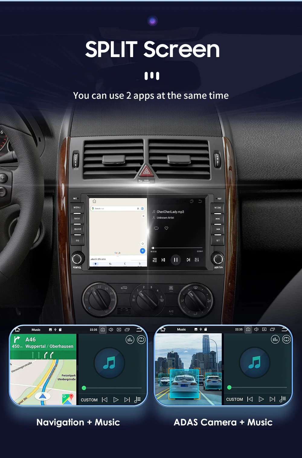 Split Screen : You can use 2 apps at the same time (such as: Navigation + Music , ADAS Camera + Music ,etc.)