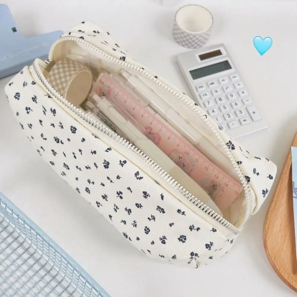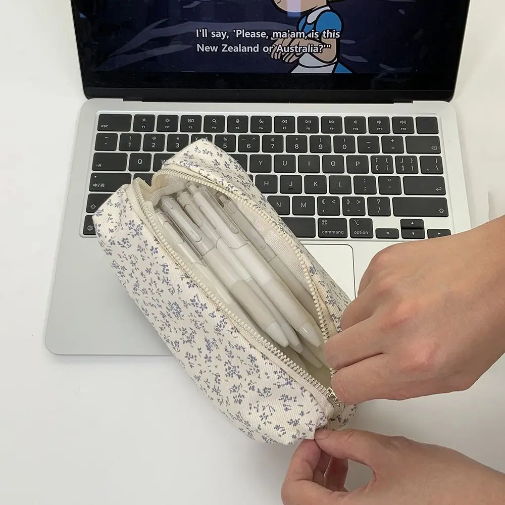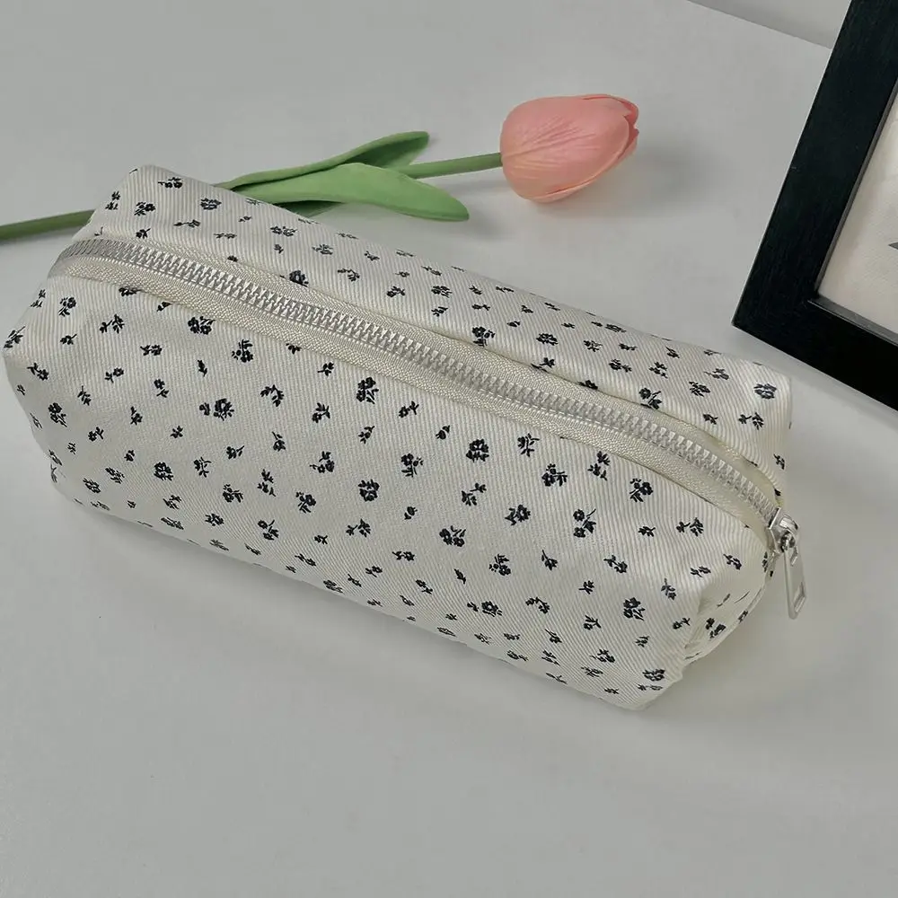 Cartoon Floral Printing Pen Bag Student Grils Stationery Bag Large Capacity Pencil Case Multifunctional Stationery Organizer