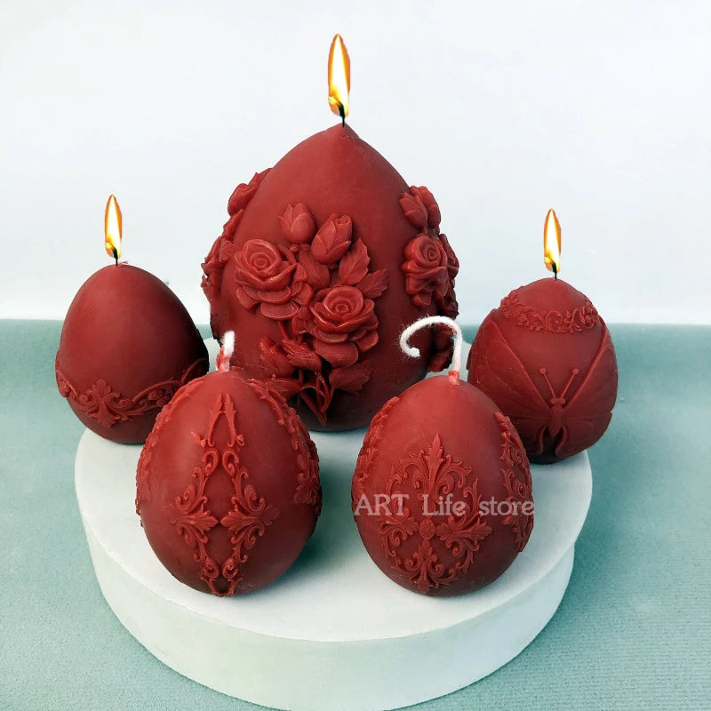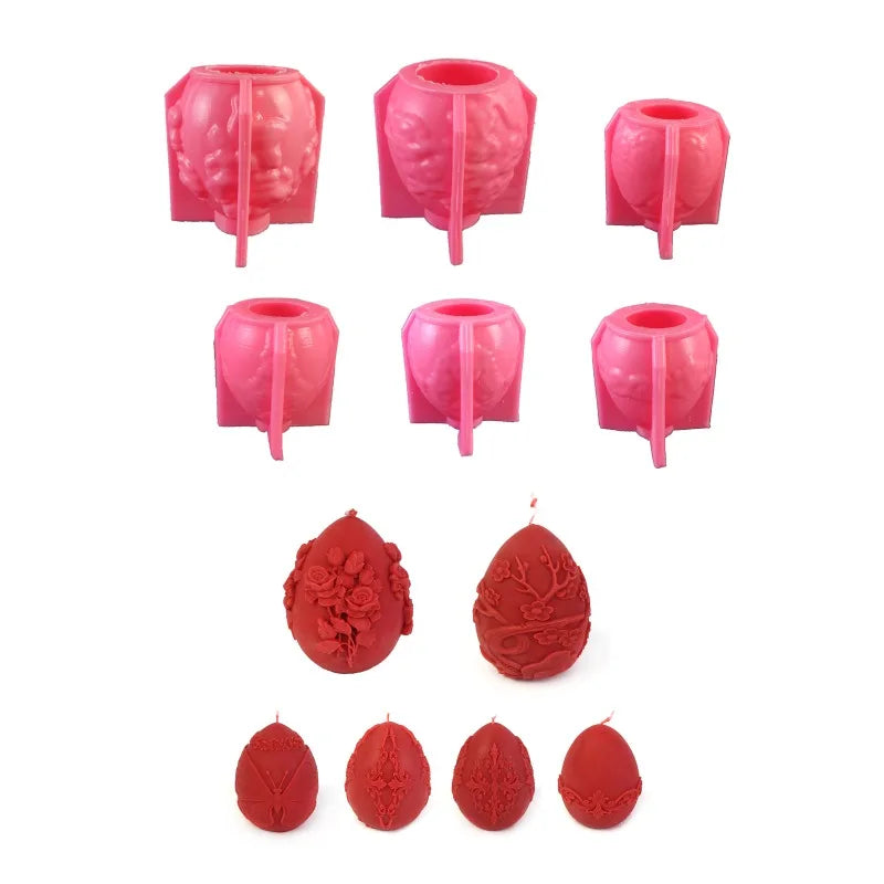 Easter Egg Silicone Candle Mold 3D Flower Relief Spherical Crafts Resin Plaster Cement Casting Molds Valentine's Day Gift Making