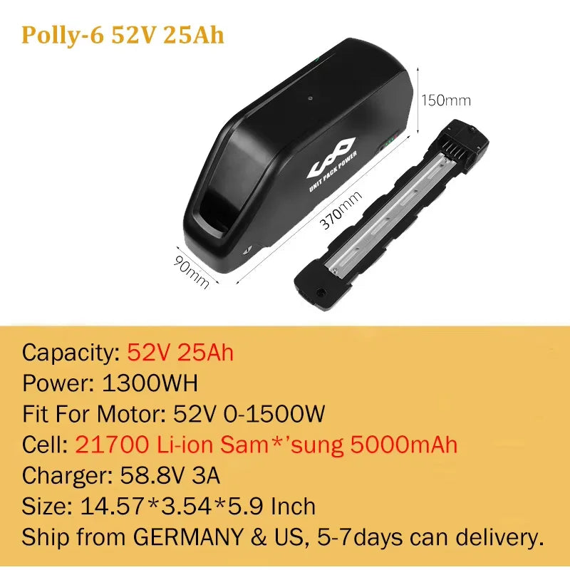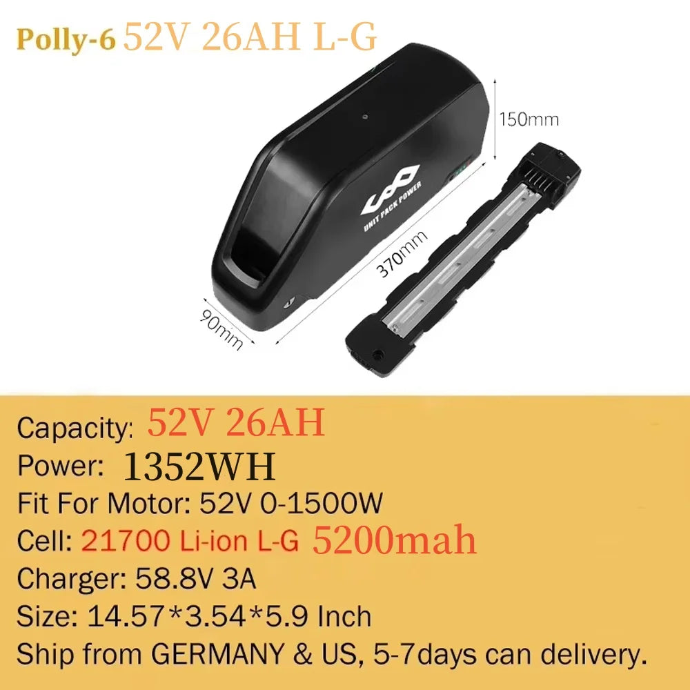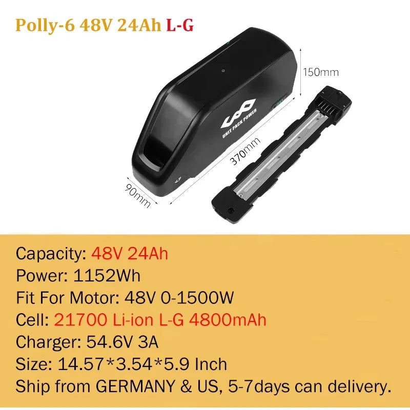 L-G/Tes-la/Sams-g Cells Ebike Battery Hailong Polly 36V 48V 52V 14.4Ah 13Ah 15Ah 20Ah 24Ah 25Ah Downtube 18650 21700 Electric Bike Batteria for 350W 500W 750W 1000W 1500W Motor