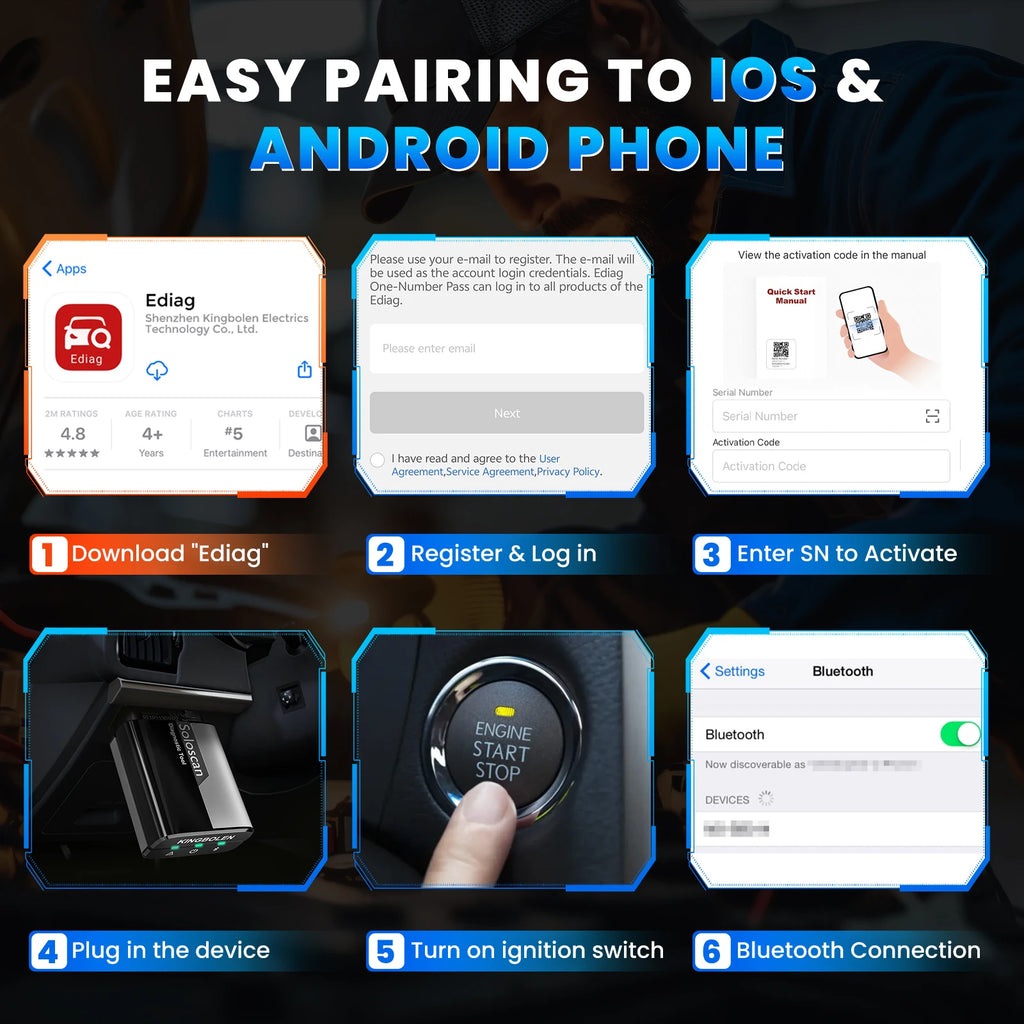 1. Download and install the APP ”Ediag app” in Google Play or your smartphone and sign up for a new account And log in.