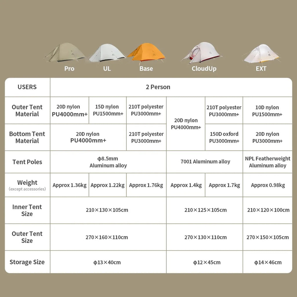 Naturehike Upgraded Cloud Up 2 Person Tent Outdoor Camping Tent Ultralight Waterproof Tent Free Standing Hiking Backpacking Tent