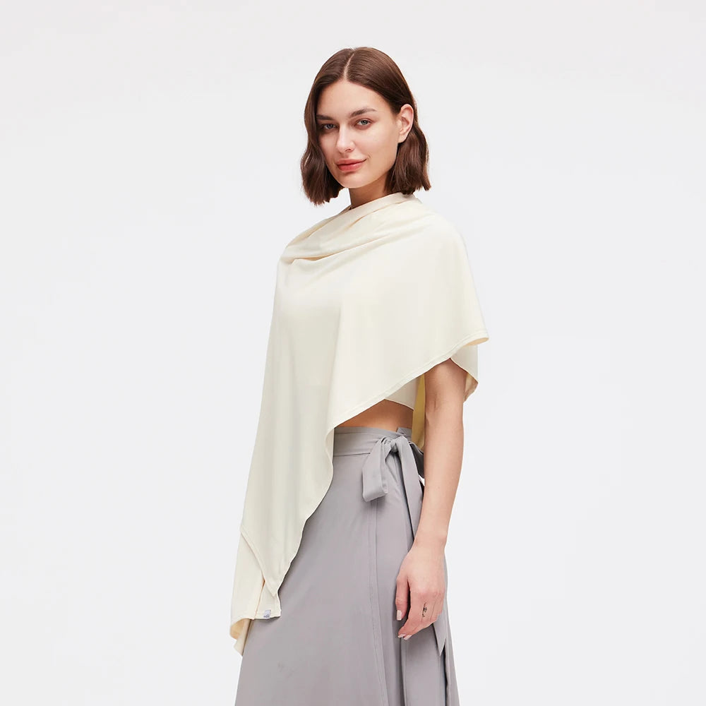 A versatile blanket that can be used as a shawl, scarf, or sunscreen skirt