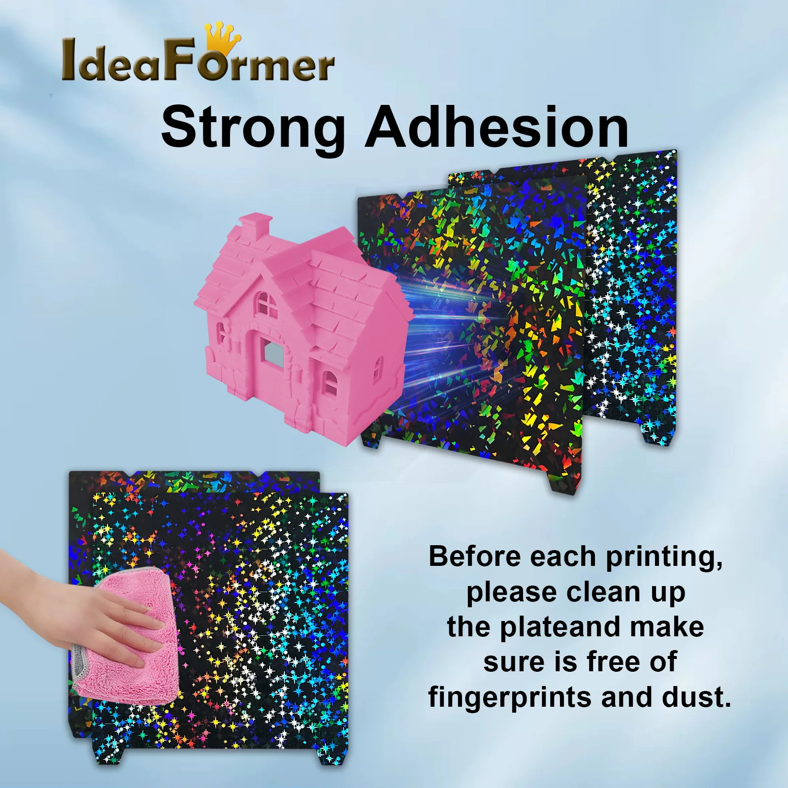 Suggestion temperature for PEI: PLA/TPU set 50℃~65℃,PETG set 70℃~80℃,ABS set 80℃~100℃.