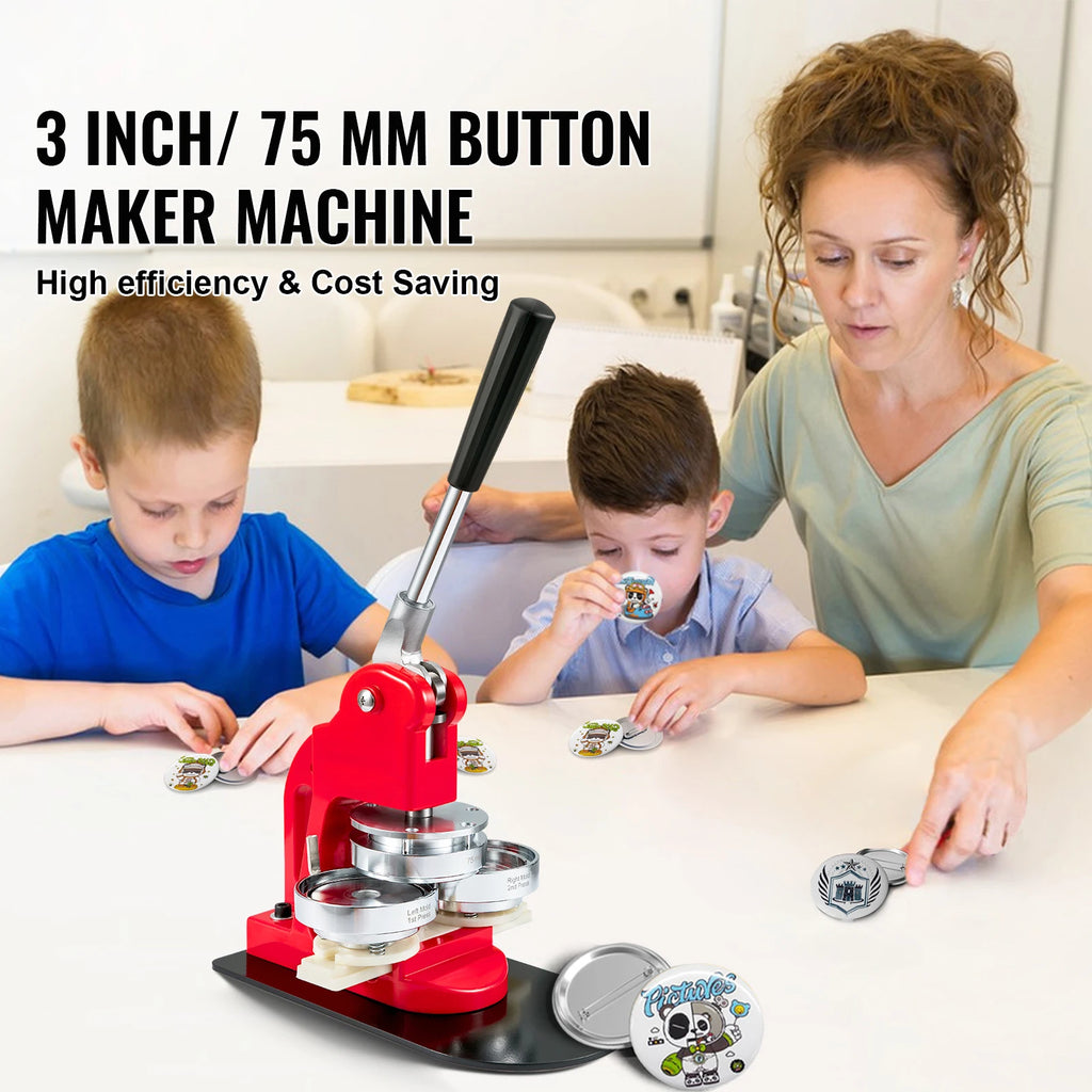 SucceBuy 25/32/58/75MM Badge Maker Machine DIY Button Pin with 500Pcs Free Parts Press Kit Circle Manufacture Button Making Tool