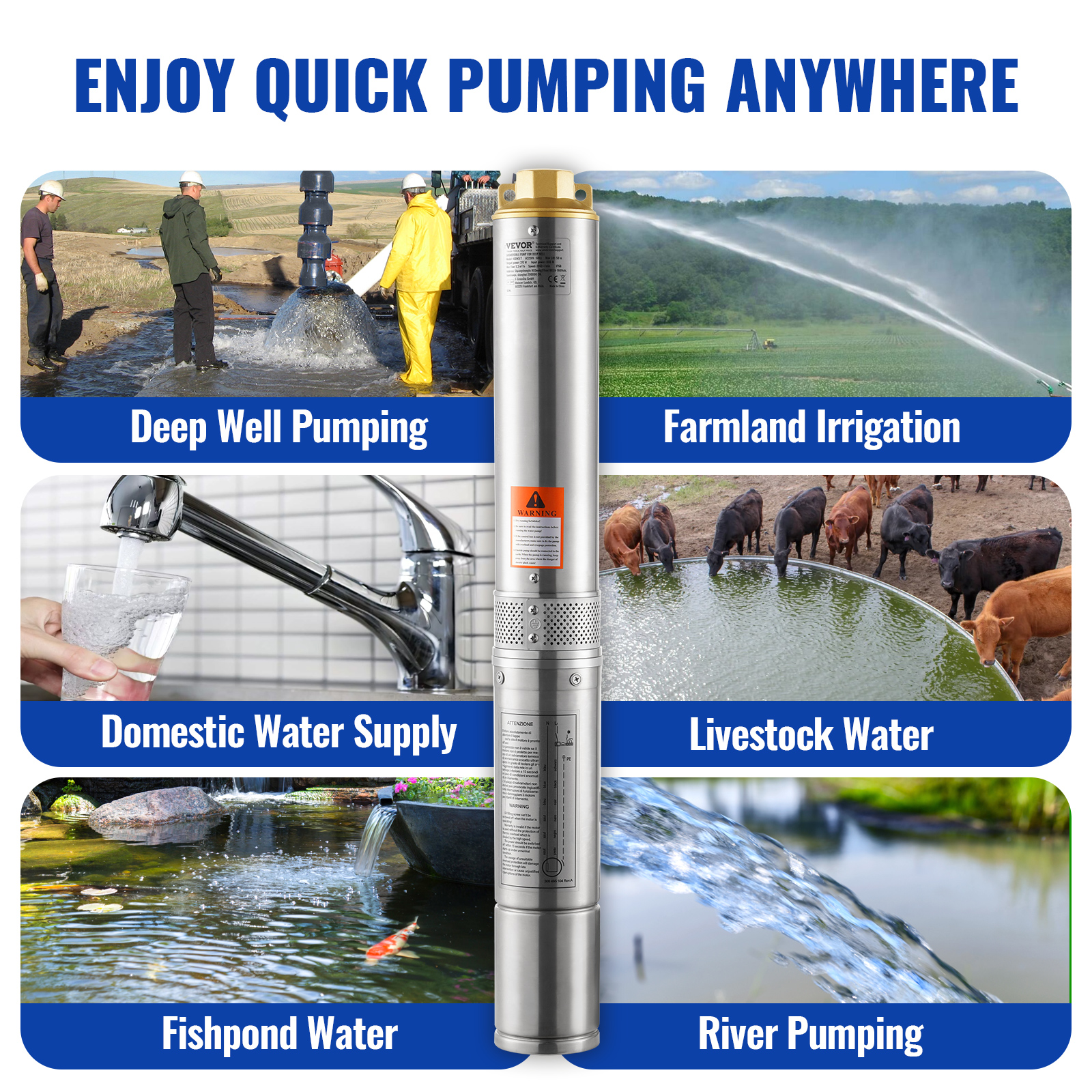 【Use It Anywhere】: Whether you want to solve water supply problems for industry, farmland, or home, this deep water well pump is the one you can trust. It works excellently as a garden water source and sprinkler for the kids. You can use the pump for extracting water from deep wells, reservoirs, canals, rivers, and other water-lifting works.