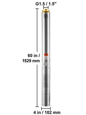 1500W External——Power: 1500W, 230V; Discharge: G1.5. This deep well submersible pump is designed with 15-stage thermoplastic impellers, providing 9.8 m⊃3;/h max flow and 108 m max head. It comes with an external control box and a 19.4 m electric cord, making life without modern plumbing a lot easier.