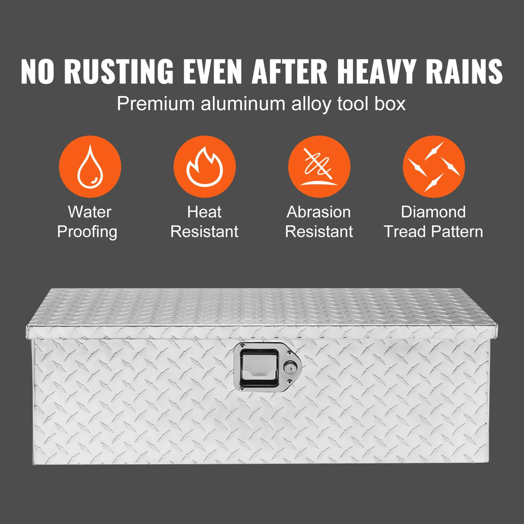 Premium Aluminum Construction: Crafted from durable aluminum alloy, this toolbox features a stylish diamond pattern and a double-sided dusting finish. This design offers exceptional resistance to corrosion, rust, and wear, ensuring long-lasting performance.Ample Storage Space: Designed with spacious interiors, this toolbox allows you to conveniently store a wide array of tools and equipment, making organization easy and accessible for your needs.