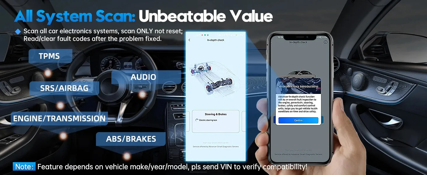 ABS System, Engine System, SAS System, TPMS System, IMMO System, Battery System, Oil Service System, SRS System, DPF System, Air Conditioning System, Transmission System, etc.
