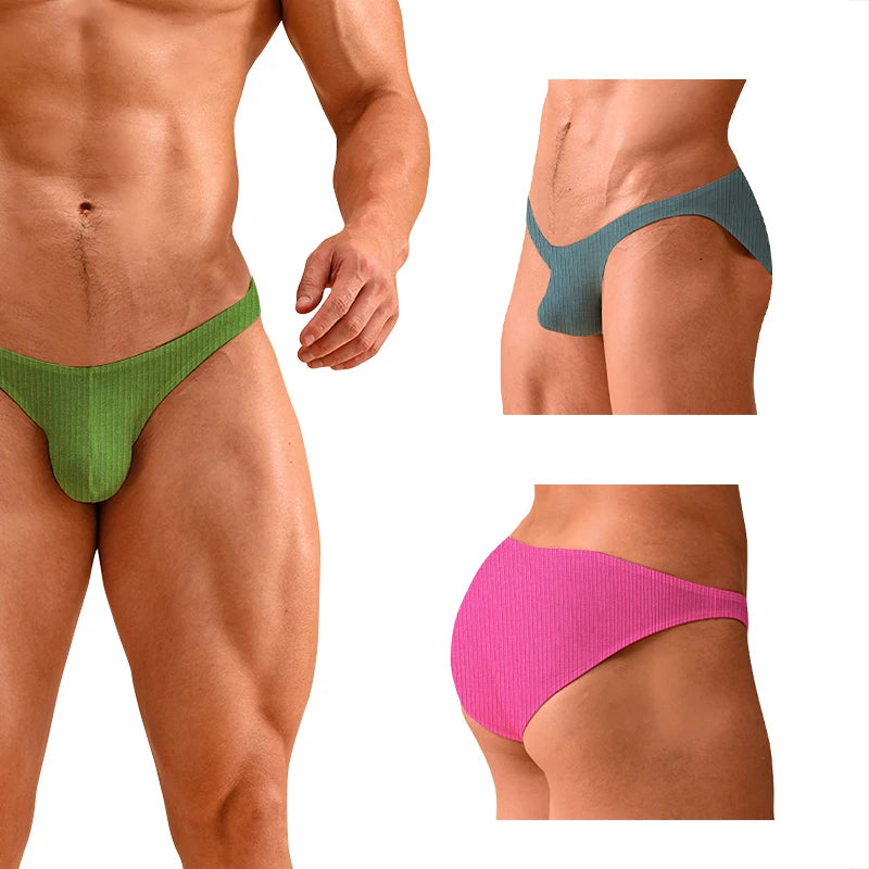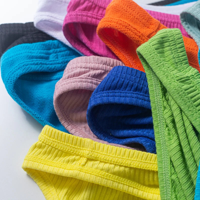 11 SolidColor Male's Briefs Bikini Style Cotton Pit Cloth Single Layer Crotch Simple Men's Underwear (Thong)