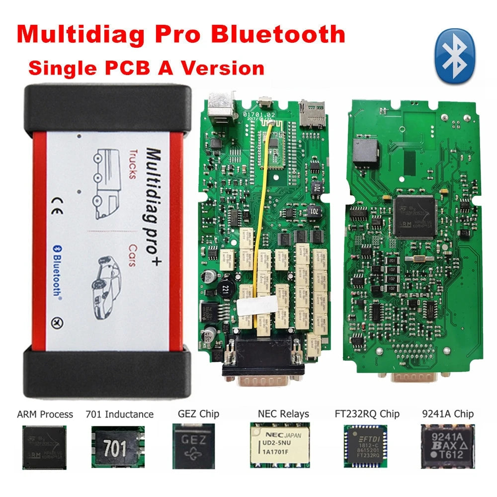 A+ Single PCB Board Multidiag Pro+ Bluetooth V2021.11 FREE Keygen Works  Cars/Trucks New NEC Relay BT 4.3 TCS Pro