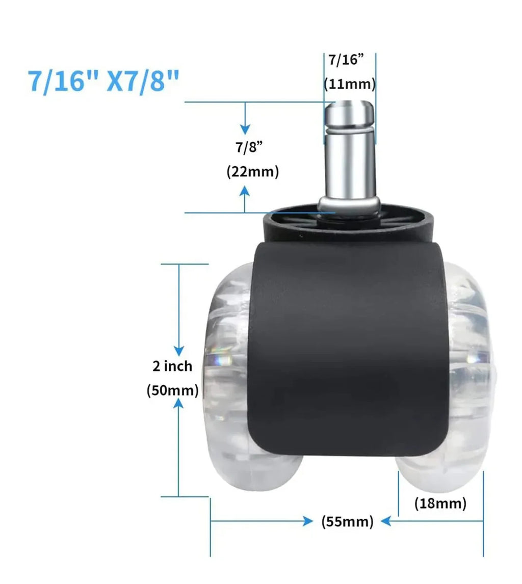 5 Desk Chair Wheels Office Chair Caster Diameter 50mm Hard Floor Caster Double Wheel Design Swivel Chair Wheels for Office Desk