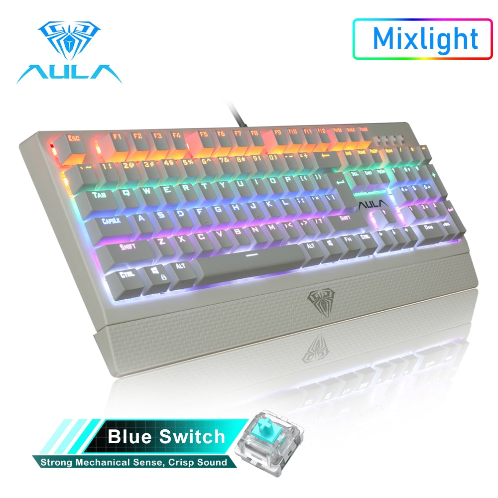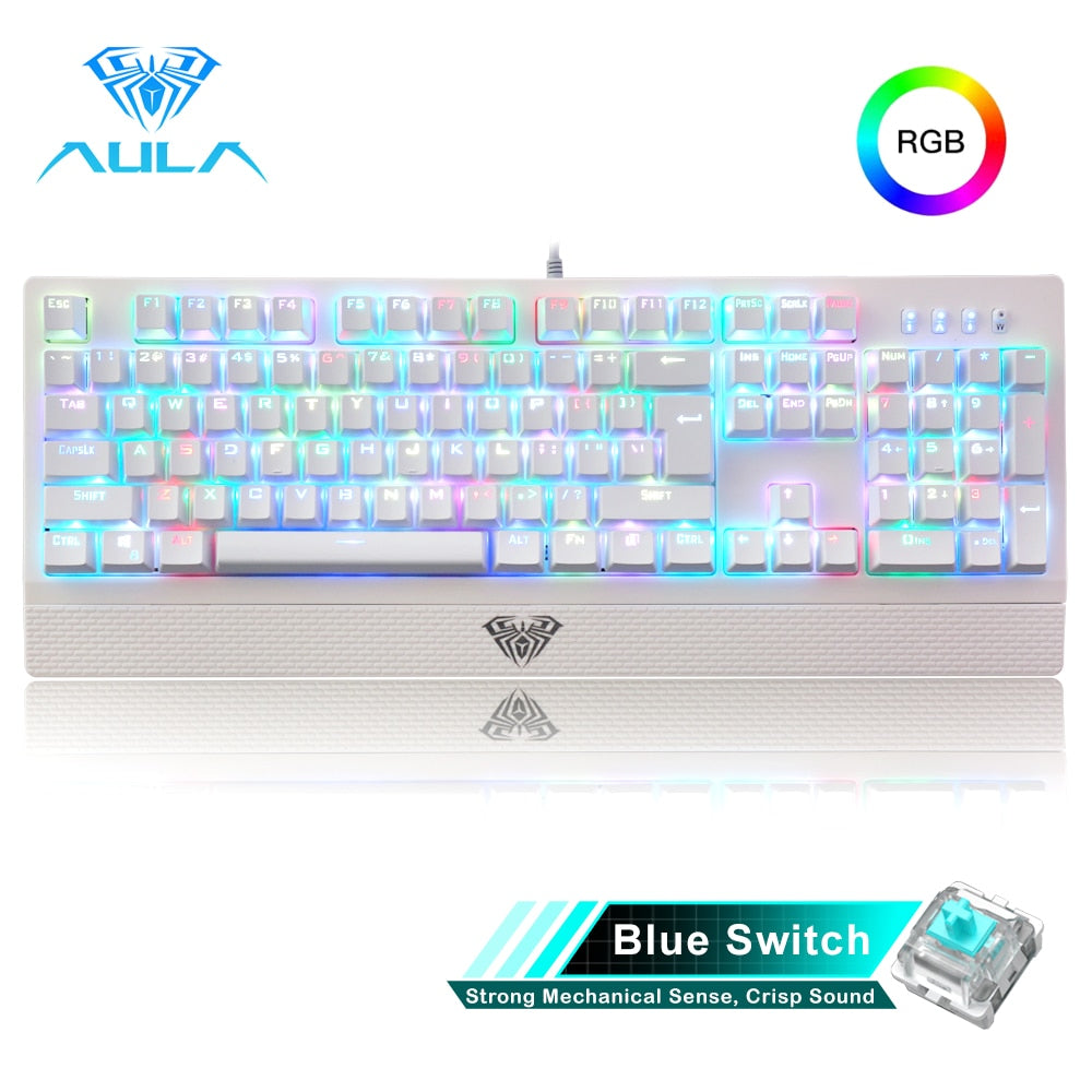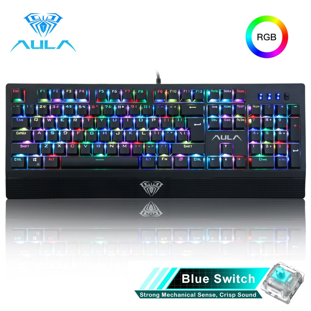 AULA RGB Gaming Mechanical Keyboard Blue Black Switch Wired Backlit Keyboard 104 Keys Anti-ghosting for Laptop Desktop PC Gamer