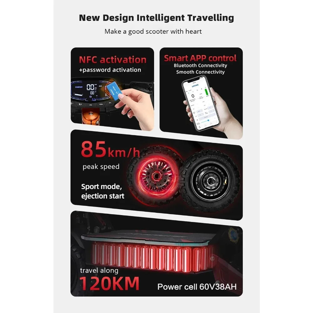 BOYUEDA S5 E-Scooter 6000W Motor 60V38AH Battery Bluetooth APP connection Electric Scooter Smart NFC Function 11" Off-Road Tire