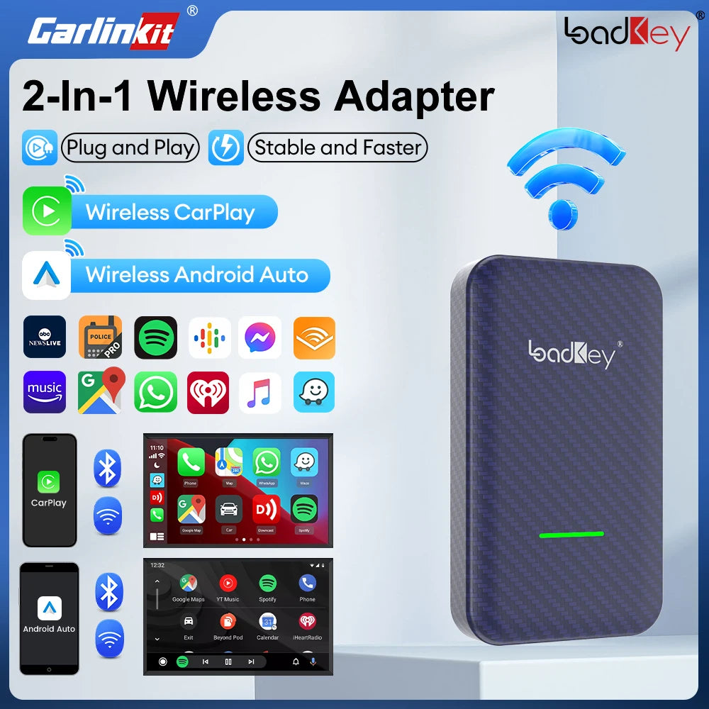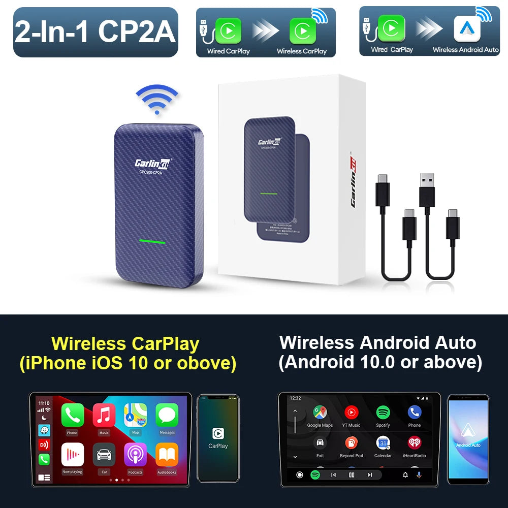 CarlinKit CP2A 2-In-1 Wireless Adapter Wired CarPlay To Wireless Android Auto & CarPlay Smart Car Box Plug & Play Online Upgrade