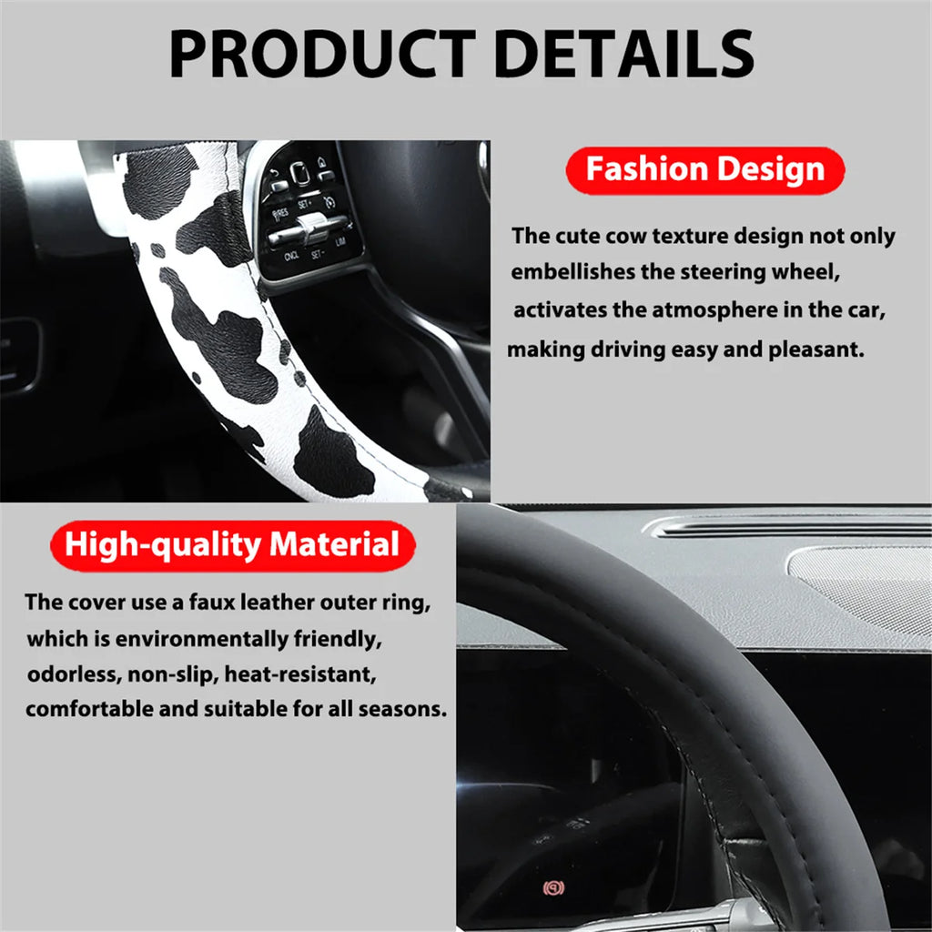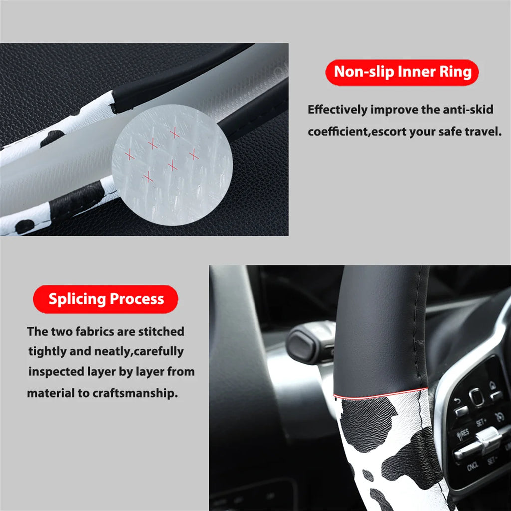 Cow Print Car Steering Wheel Cover Leather Non-slip Universal Fit Wheel Protector for BMW X1 X3 X5 e30 e46 e60 e90 f30