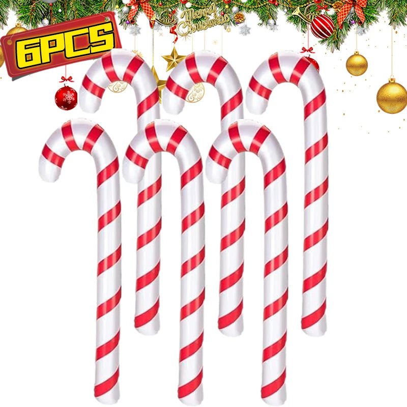 Inflatable Christmas Candy Cane Red White Stripes Candy Cane Balloons Xmas Tree Hanging Ornament New Year Party Decor Kids Gift