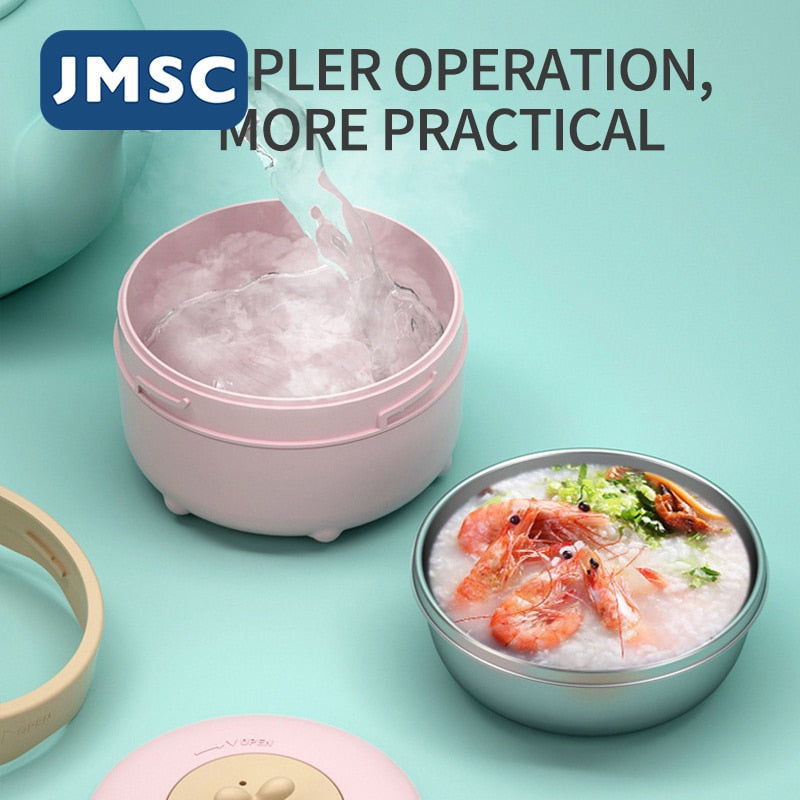 JMSC Food Warm Injection Hot Water Insulation Kids Dishes Stainless Steel Tableware Baby Sucker Feeding Bowl Plate Cute Gadgets
