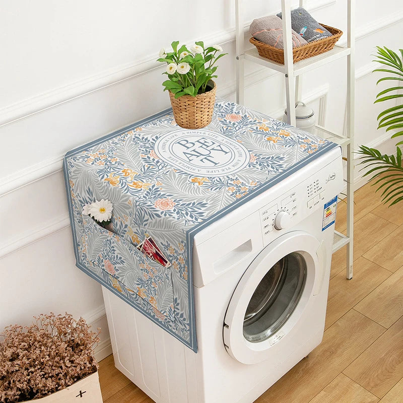 Nordic Drum Washing Machine Covers Waterproof Kitchen Refrigerator Dust Cover Microwave Oven Decor Dust Protector with Pocket