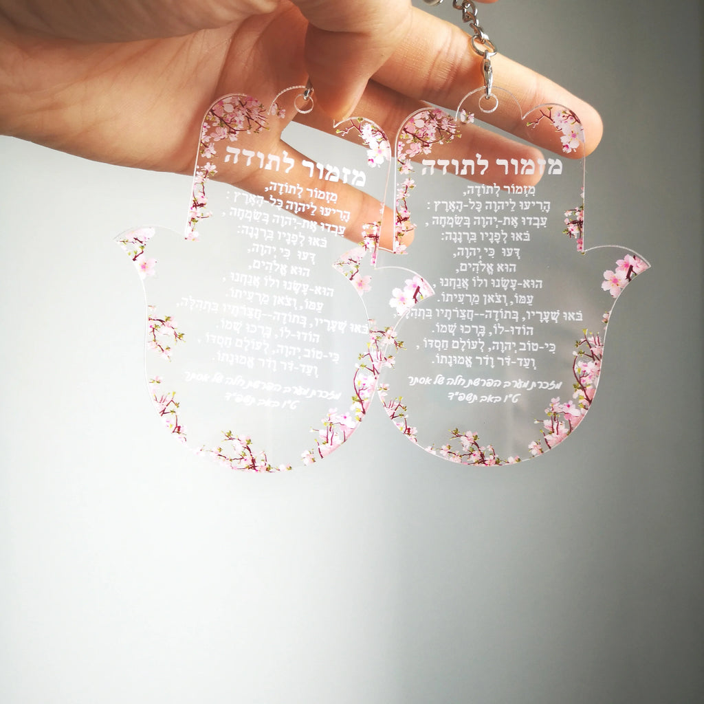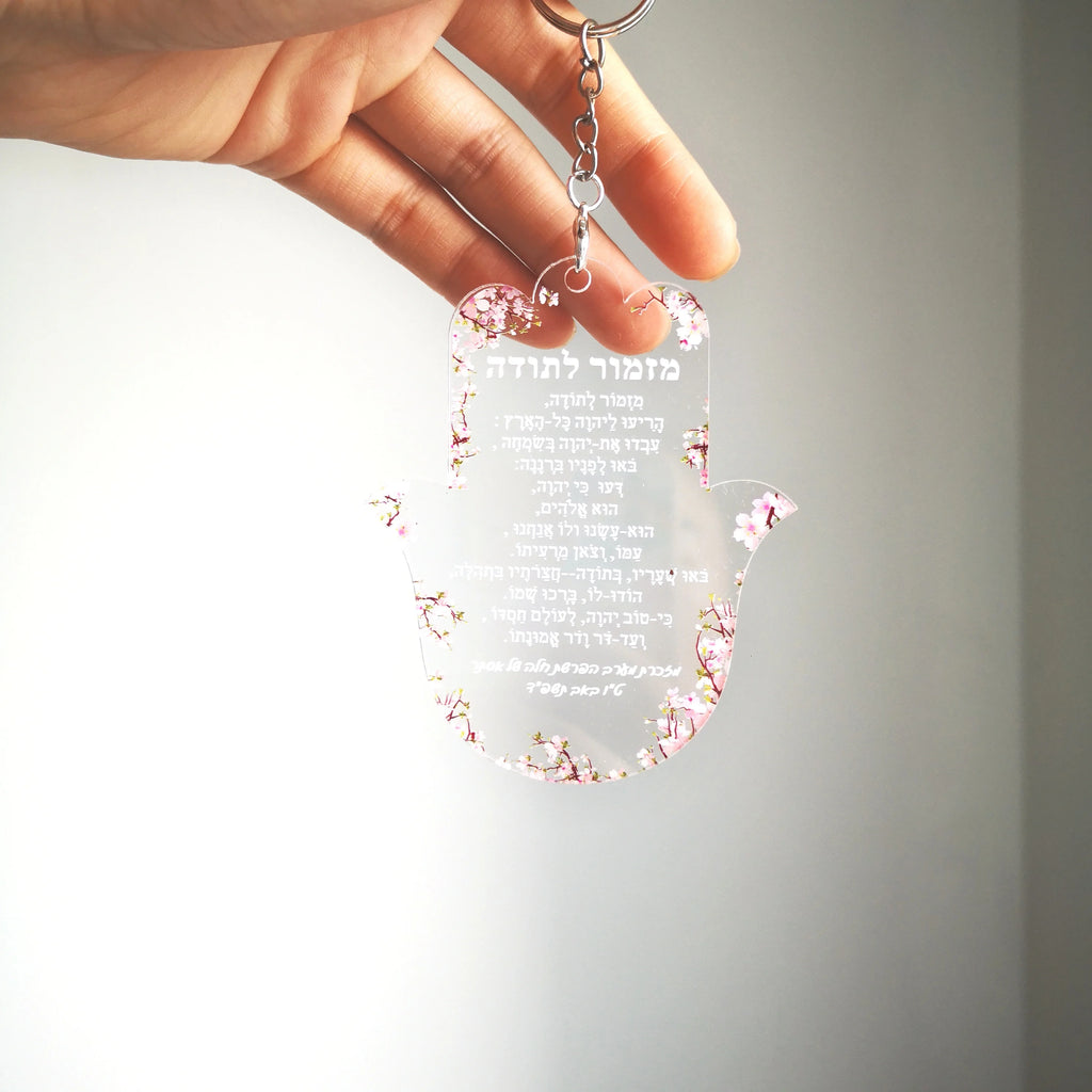 Personalized Acrylic Keychain, Custom Inscription, Wedding Souvenir Bar, Mitzvah Guest, Hebrew, Hamsa, Hymn of Thanksgiving 10pc