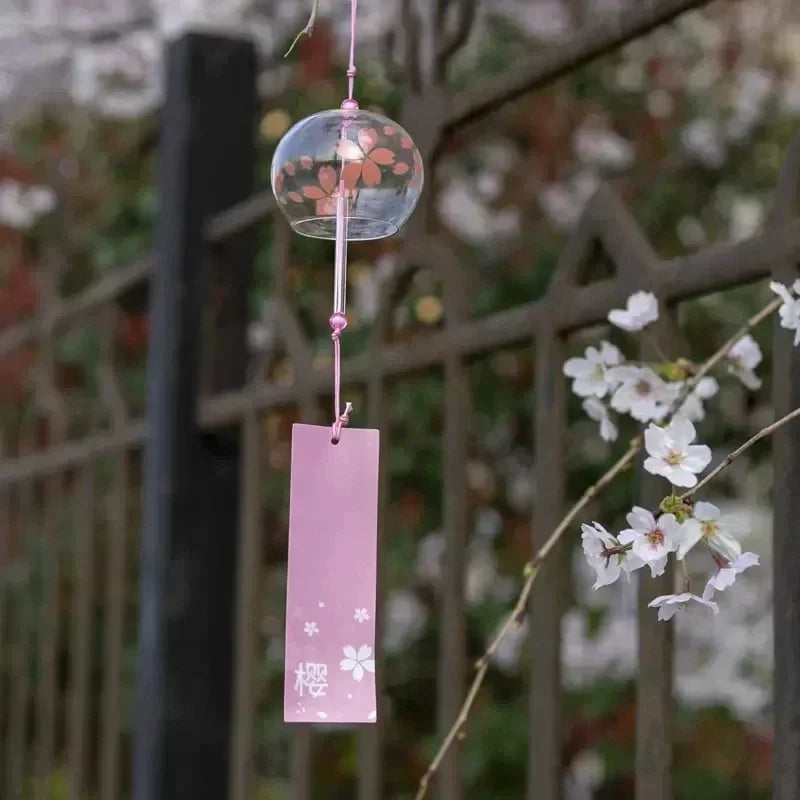Sakura Glass Wind Chime Hanging Drop Birthday Gift Ornament Transparent Wind Spinner Bell Pendant Japanese Style Decoration
