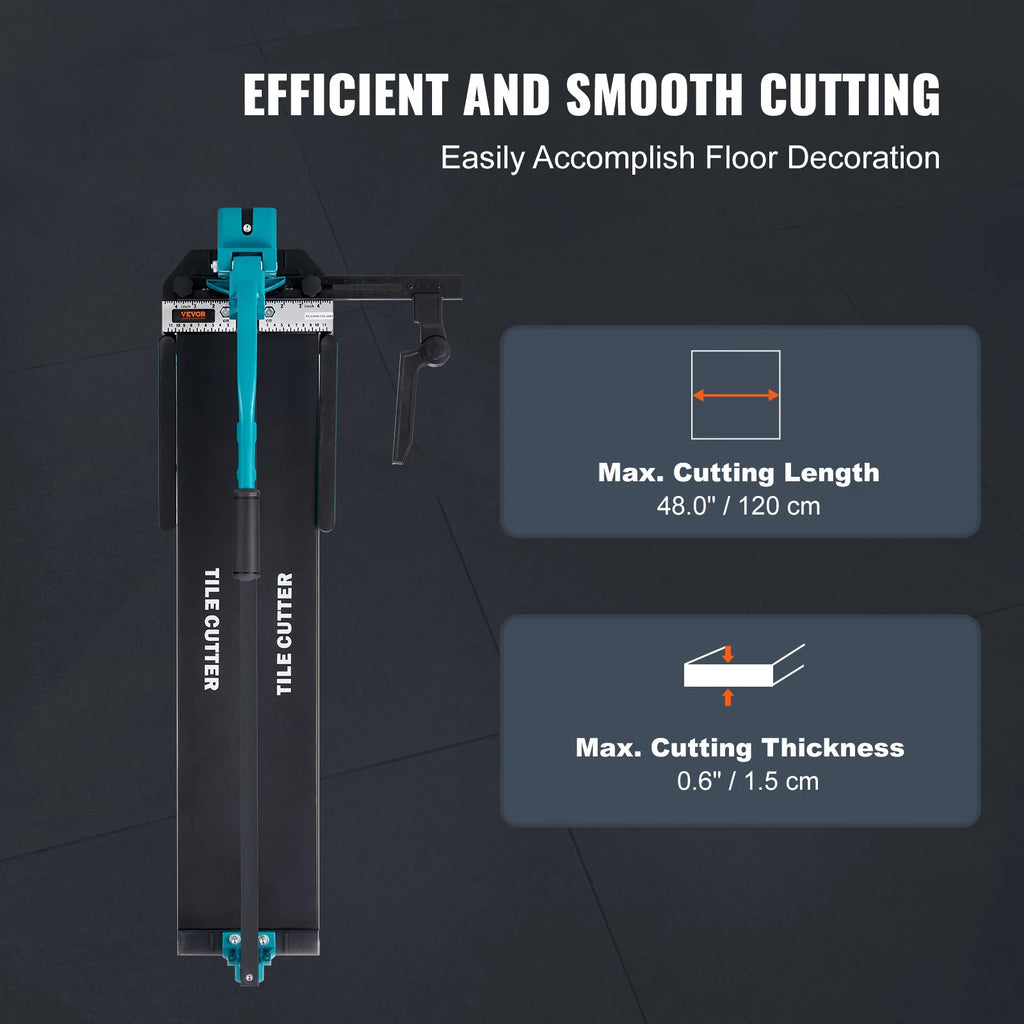 Powerful Performance: This 48-inch tile cutting machine is designed to swiftly and effortlessly tackle your home renovation projects. Maximum cutting length: 48.0'' / 1200 mm, Cutting thickness: 0.2'' -0.6'' / 4-15 mm. It delivers clean and precise cuts on ceramics, porcelain, granite, floor tiles, etc.