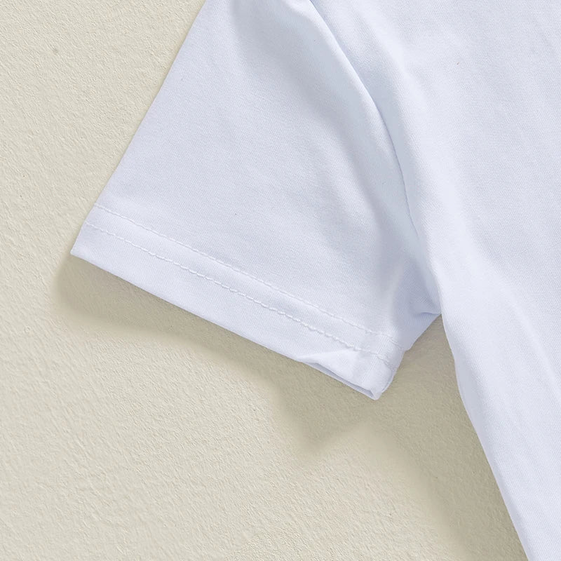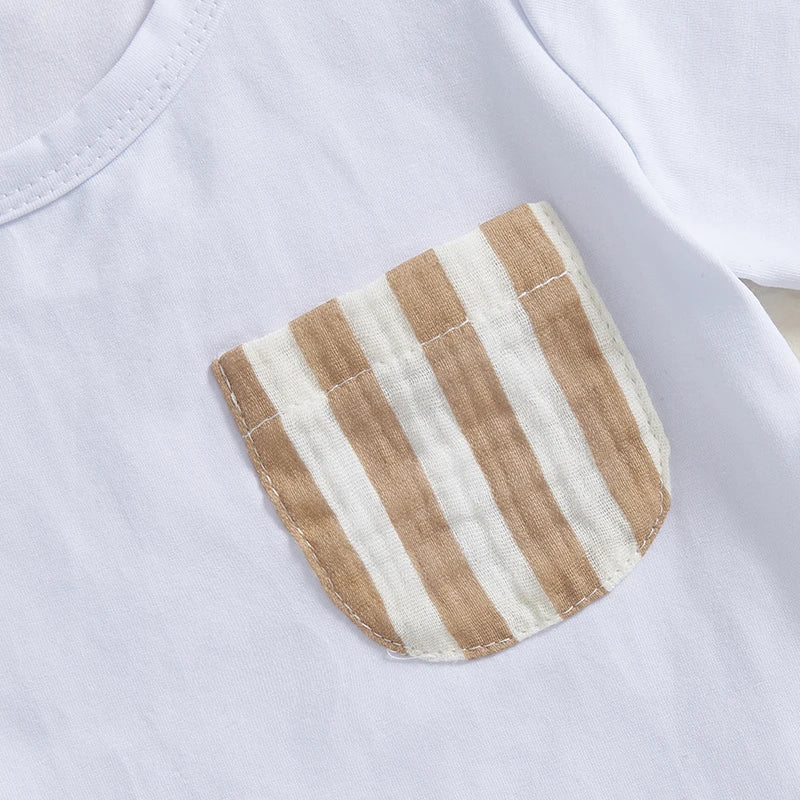 Baby Boy Outfit, Short Sleeve Crew Neck T-shirt with Striped Overall Pants Summer OutfitThe baby boys pants set is a must-have outfit for them in summer, they will love it! Easy outfit!