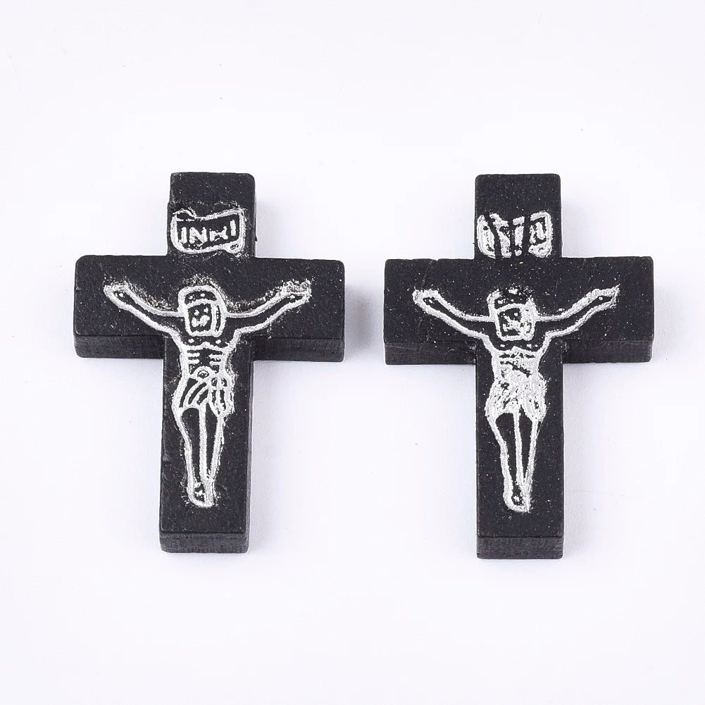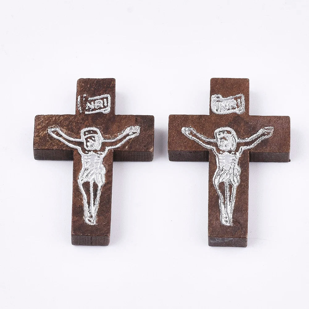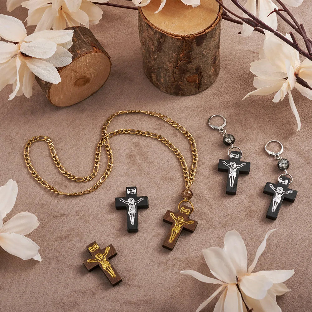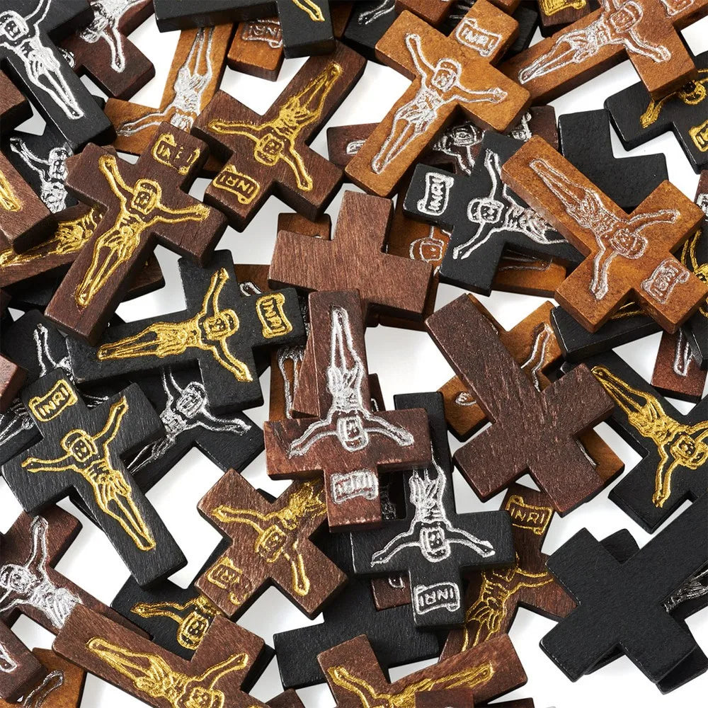 100-200Pcs Wooden Cross Pendants Printed Wood Charms For Easter Jewelry Bracelet Necklace Making Findings Mxied Color