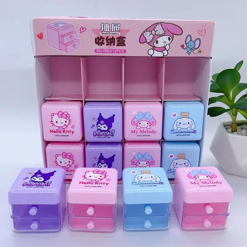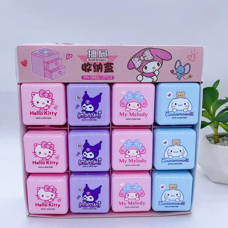 12pcs Cute Cartoon Sanrio Cinnamoroll My Melody Kuromi Drawer Storage Box Mini Jewelry Finishing Box Double Jewelry Box Gifts