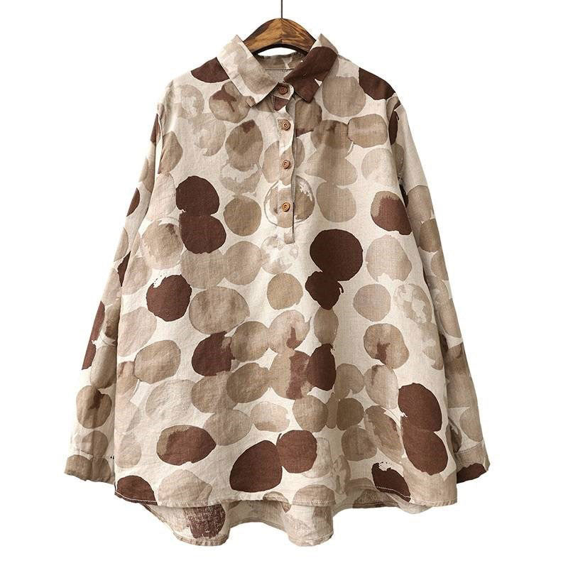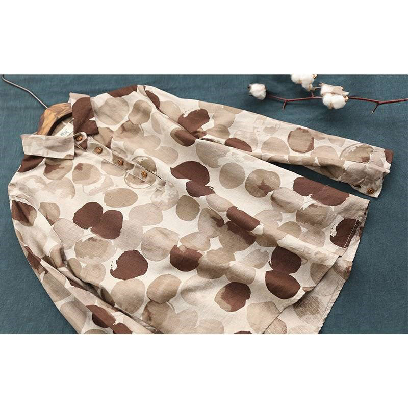 2022 New Spring Women Shirts Long Sleeve Cotton Linen Button Casual Shirts Vintage Polka Dot Print Vintage Blouses Tops P11