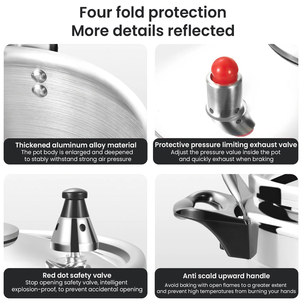 [Double Bottom Design] Equipped with double bottoms, it can evenly distribute pressure, ensuring uniform and fast cooking, saving you valuable time.