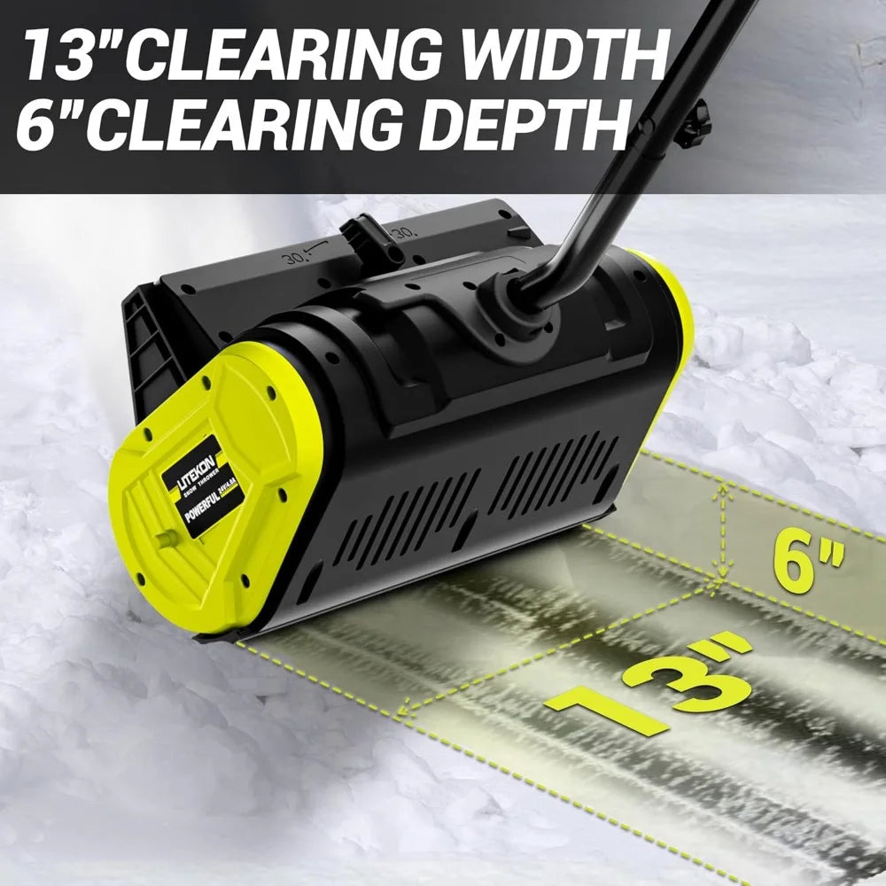 • EFFICIENT & EFFORTLESS SNOW REMOVAL - LITEKON cordless snow shovel is equipped with an efficient BRUSHLESS motor. Easily clear snow up to 13 inches wide and 6 inches deep, and throw it up to 25 ft away.Say goodbye to the labor associated with traditional shoveling and make snow removal easy!