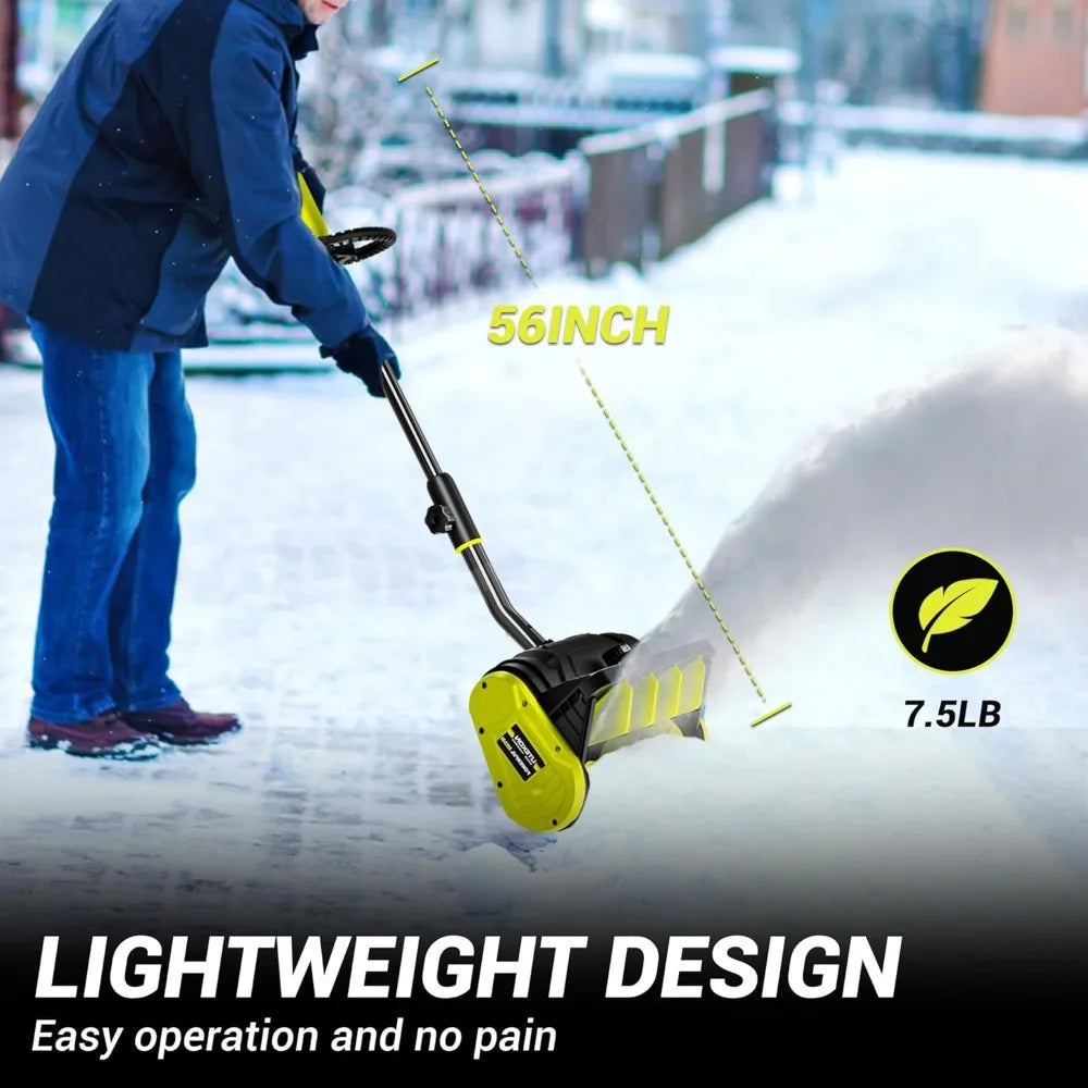 • ERGONOMIC & LIGHTWEIGHT USER-FRIENDLY DESIGN - This cordless snow shovel is ergonomically designed. The shock-absorbing padded grip and auxiliary handle provide you with a more comfortable use, and the 56inches usage length allows you to remove snow without bending over. 7.5lbs lightweight and user-friendly design is suitable for the elderly and women, and increases the comfort level for long time use. LITEKON cordless snow shovel makes snow clearing easier than ever.