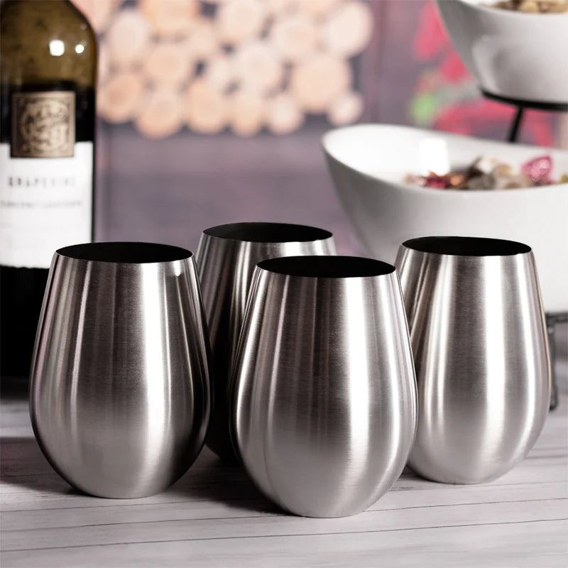 4PCS Stainless Steel Stemless Wine Glasses Kitchen Bar Unbreakable Metal Drink Cups For Indoor & Outdoor Picnics Camping