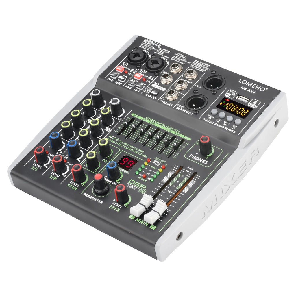 LOMEHO Mini 4 Channels Mixing Console Individual +48V 99 DSP Effects Bluetooth USB Computer Play and Record Audio Mixer AM-AX4