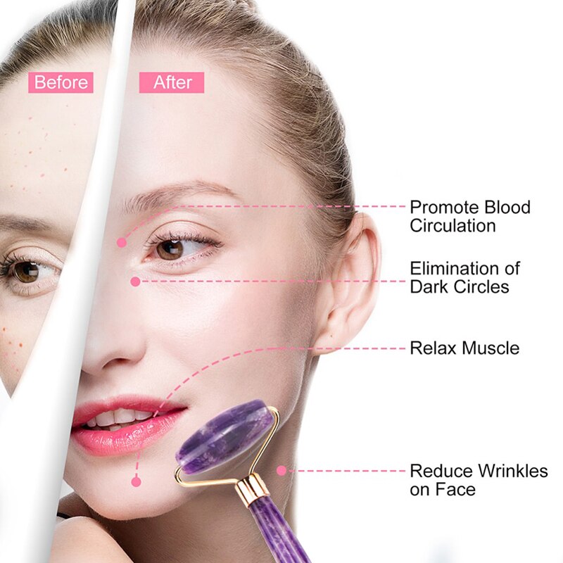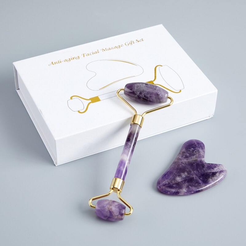 Amethyst Face Roller Gua Sha massager Natural Stone Jade Roller Slimming AntiCellulite Physiotherapy Set Facial Neck Massager