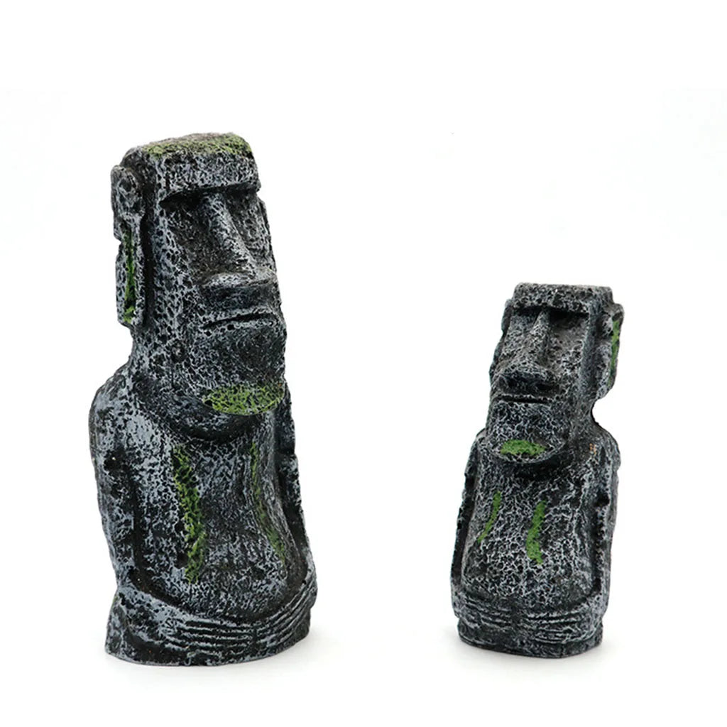 Aquarium Moai Statues Easter Island Head Ornaments Statues Fish Tank Landscaping Decor Home Tabletop Terrarium Aquascaping