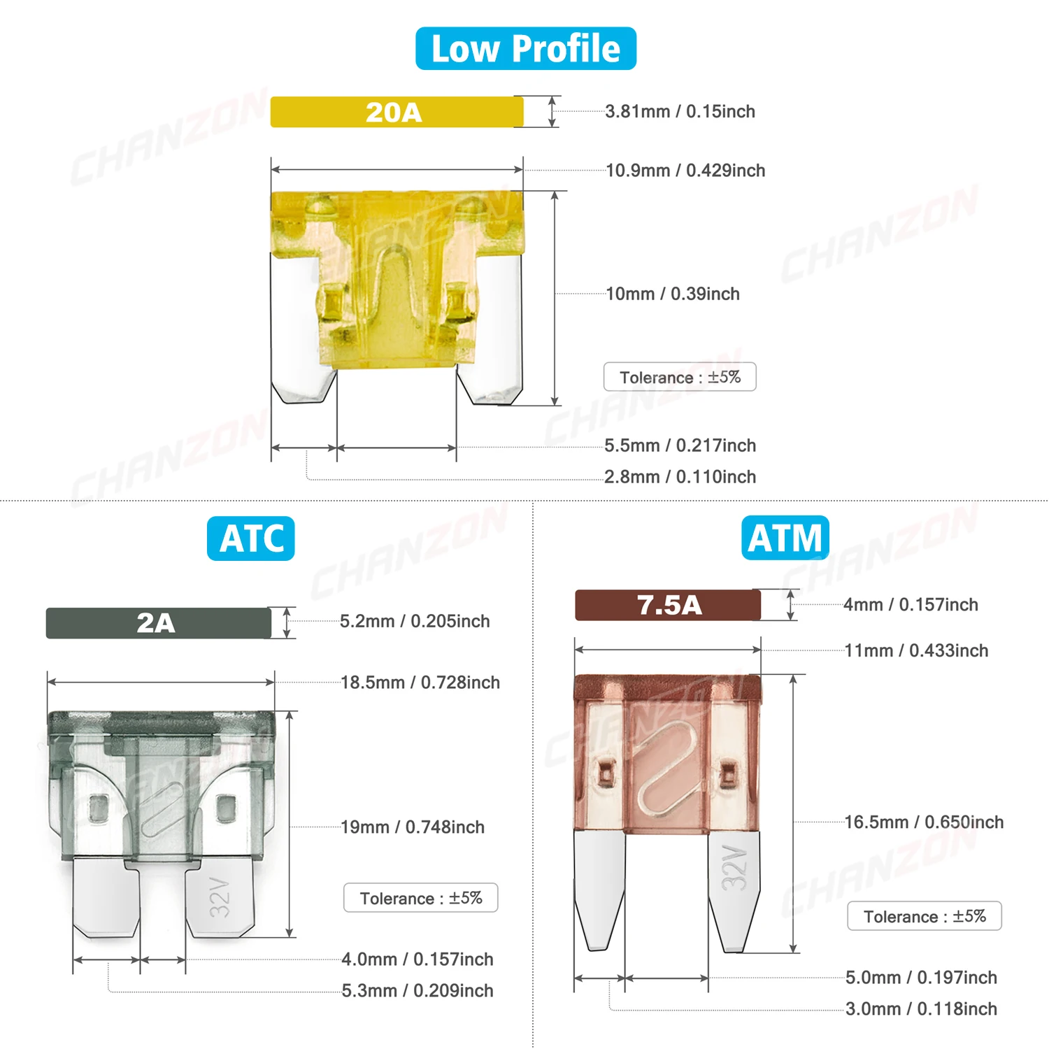ATC ATM Mini Micro Car Fuse Auto Blade 2A 3A 5A 7.5A 10A 15A 20A 25A 30A 35A 40A Fast Blow Electric Motorcycle Automotive