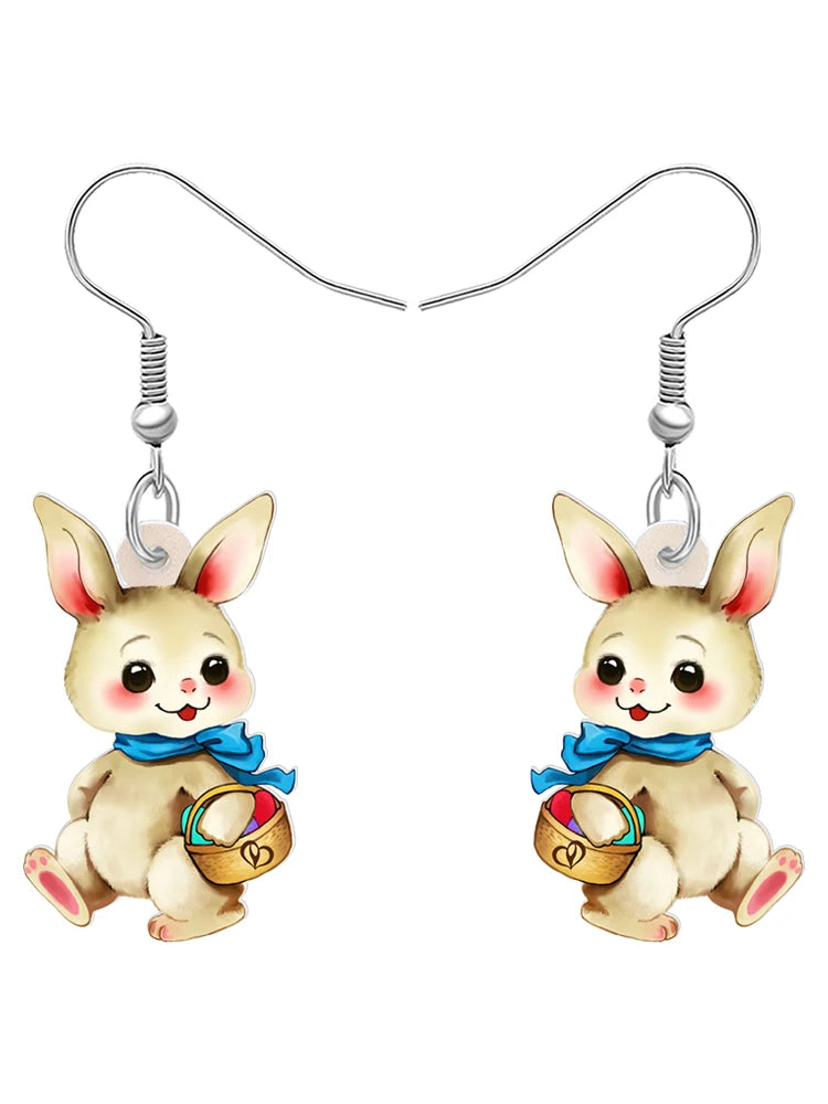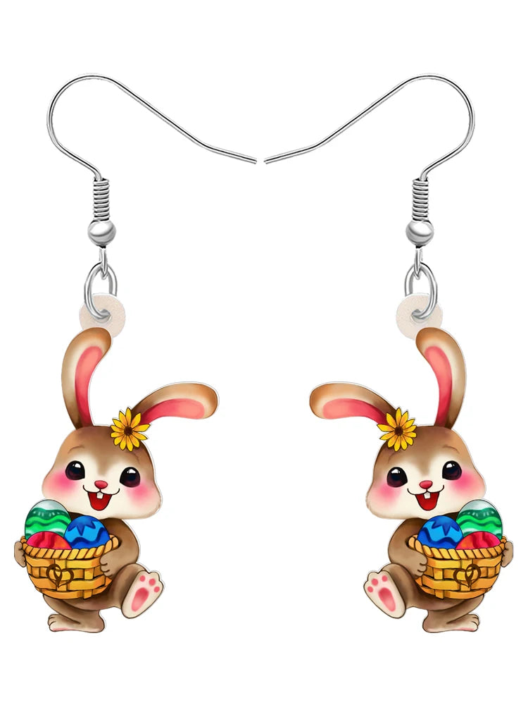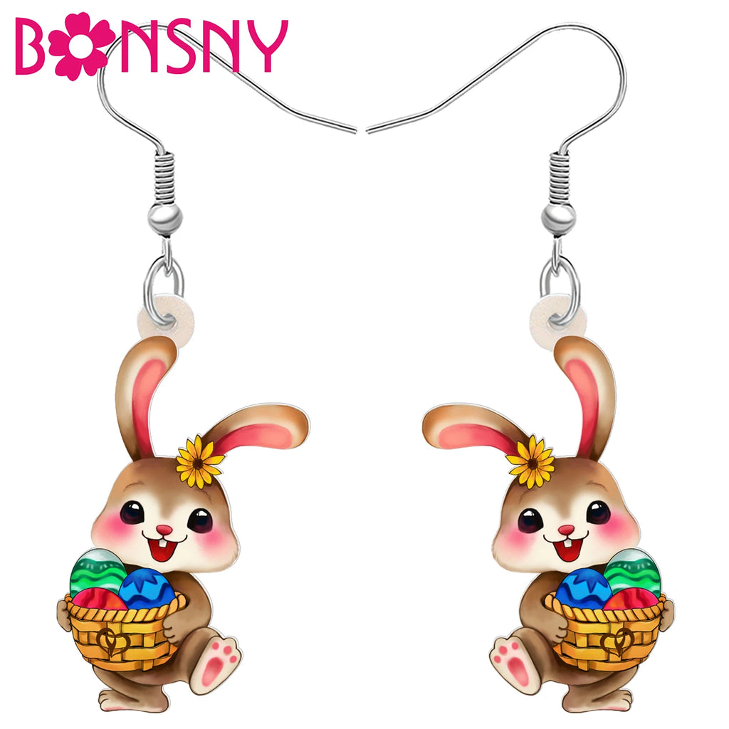 BONSNY Acrylic Easter Basket Egg Rabbit Dangle Drop Earrings Jewelry For Women Girls Kids Gifts Accessories
