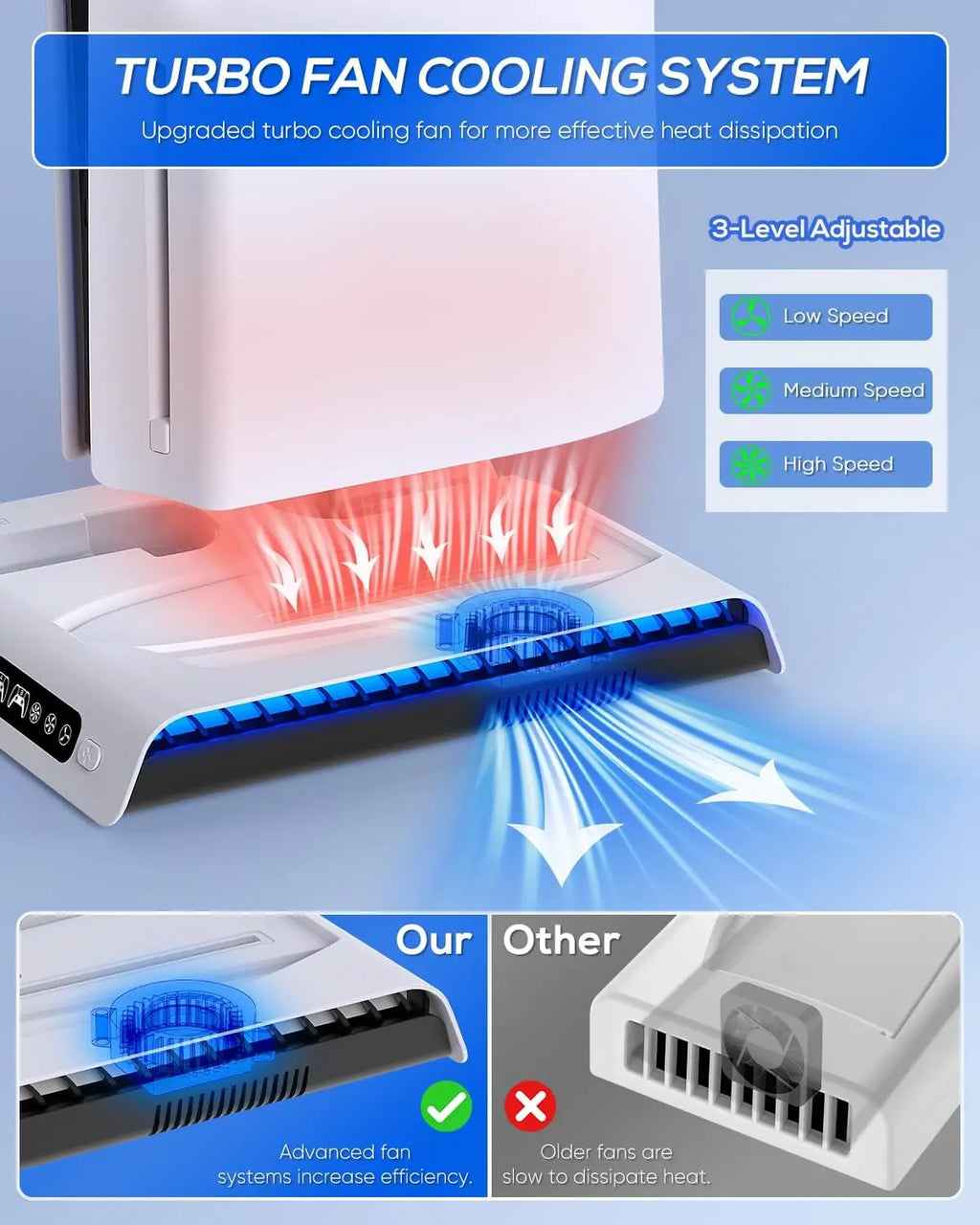 Cooling Stand for PS5 Slim Disc/Digital Edition with Controller Charging Station Stand Fan for Playstation 5 Slim Console 9 LED